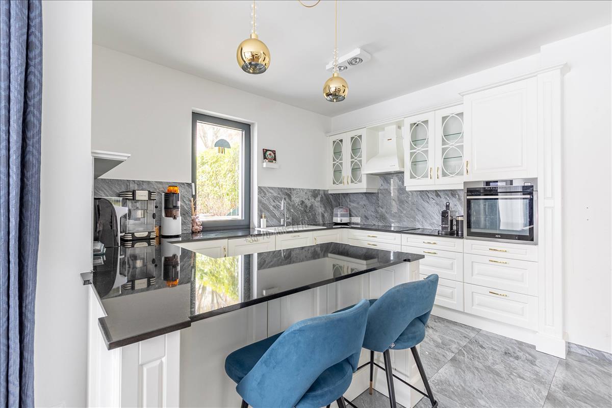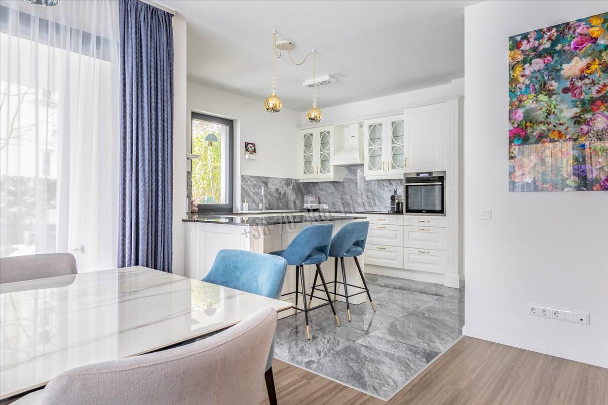 Elrendezése ideális család számára: a közösségi térben tágas (44 nm -es), nappali–étkező, a részben szeparált, világos, ablakos, étkező pulttal épített konyhával, gránit munkalappal, klasszikus fehér frontokkal és teljes körű gépesítéssel, kényelmesen használható toronyba épített sütővel.