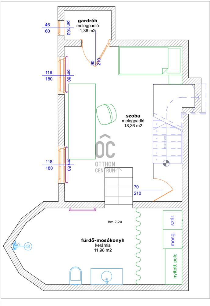 -szoba, gardrób, fürdőszoba, külön mosóhelyiség