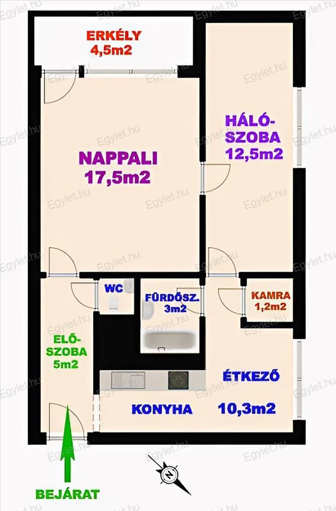 A lakáshoz tartozik egy közös használatú tárolóhelyiség is (száraz pincében).