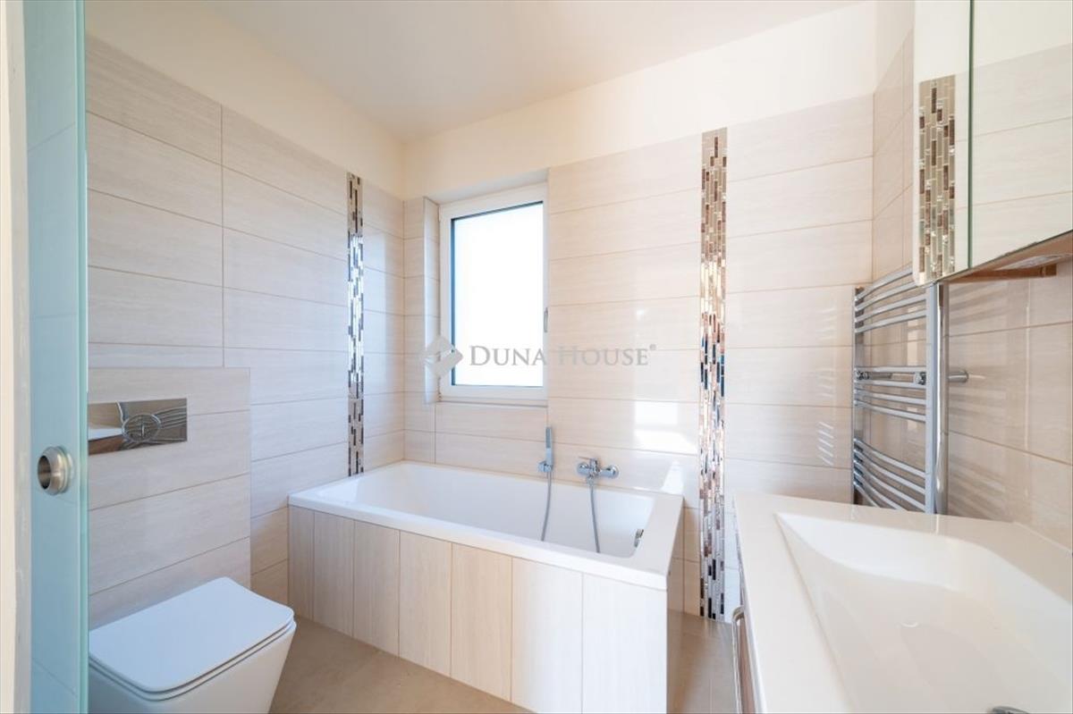 Exkluzív kertkapcsolatos otthon a II. kerületben ERZSÉBETLIGETENBudapest II. kerületének egyik csendes, sík utcájában, Erzsébetligeten kínálunk megvételre egy különleges adottságú, egyszintes, kertkapcsolatos lakást egy mindössze kétlakásos társasház földszintjén. Az ingatlan nappali + 2 szobás, 116 m² alapterületű, és olyan kombinációt kínál nagy terasz, privát kert, modern gépészet és garázs amely rendkívül ritkán jelenik meg a II. kerületben. Alapadatok:- Lakótér: 116 m²- Elrendezés: nappali + 2 szoba- Szint: földszint- Társasház: 2 lakásos, kis léptékű épület- Kültéri adottságok valódi budai életérzés- 40 m² terasz- 353 m² saját, leválasztható kert (alapító okiratban rögzítve)- 5 m² kerti tároló- Intim, zöld környezet, ideális családi élethez vagy reprezentatív otthonként- Elektromos kapu- Külön bejárat az utcáról- Saját kukatároló- Külön villanyóra szekrény- Külön közüzemi mérőórák- Csak a gépészeti helyiség közös használatúParkolás:- 1 garázs- 1 felszíni gépkocsibeállóPrémium műszaki tartalom:- Levegőhőszivattyús fűtési és hűtési rendszer- Padló- és mennyezeti hőleadás- Hővisszanyerős szellőztető rendszer- hofstadter prémium nyílászárók- Elektromos redőnyök- Pliszé szúnyoghálók- Napelem előkészítés- Beépített konyhabútor (gépek nélkül)- Okosotthon rendszer - Telefonról vezérelhető funkciók- RiasztórendszerMiért különleges ez az ingatlan? - Kertkapcsolatos lakás Budán ritka kategória- Kis lakásszámú társasház- Modern, energiatakarékos gépészet- Családi ház érzetét adó élettér- Stabil, értékálló budai lokációAz ilyen paraméterekkel rendelkező ingatlanok nagyon ritkán kerülnek piacra a II. kerületben. a privát kert, a nagy terasz, a modern gépészet és a kis léptékű társasház együtt valódi prémium életminőséget kínálnak.