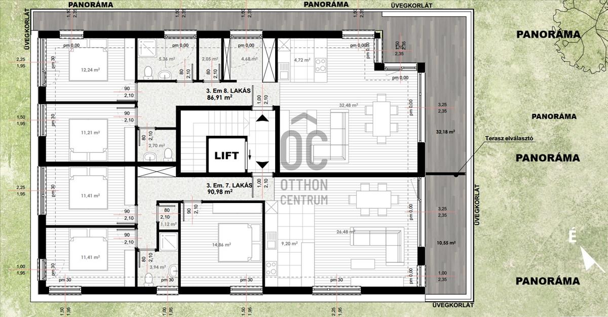 Az ingatlan főfalak által behatárolt területe jelen pillanatban még a leendő vásárlói igényeknek megfelelően alakítható ki: válaszfalak elhelyezése, szobaszám, szobák mérete…. Stb. Erre hivatkozva a jelenlegi alaprajz csak tájékozató jellegű, mint ahogy az látszik, 2 külön lakásként is megvásárolható az ingatlan!