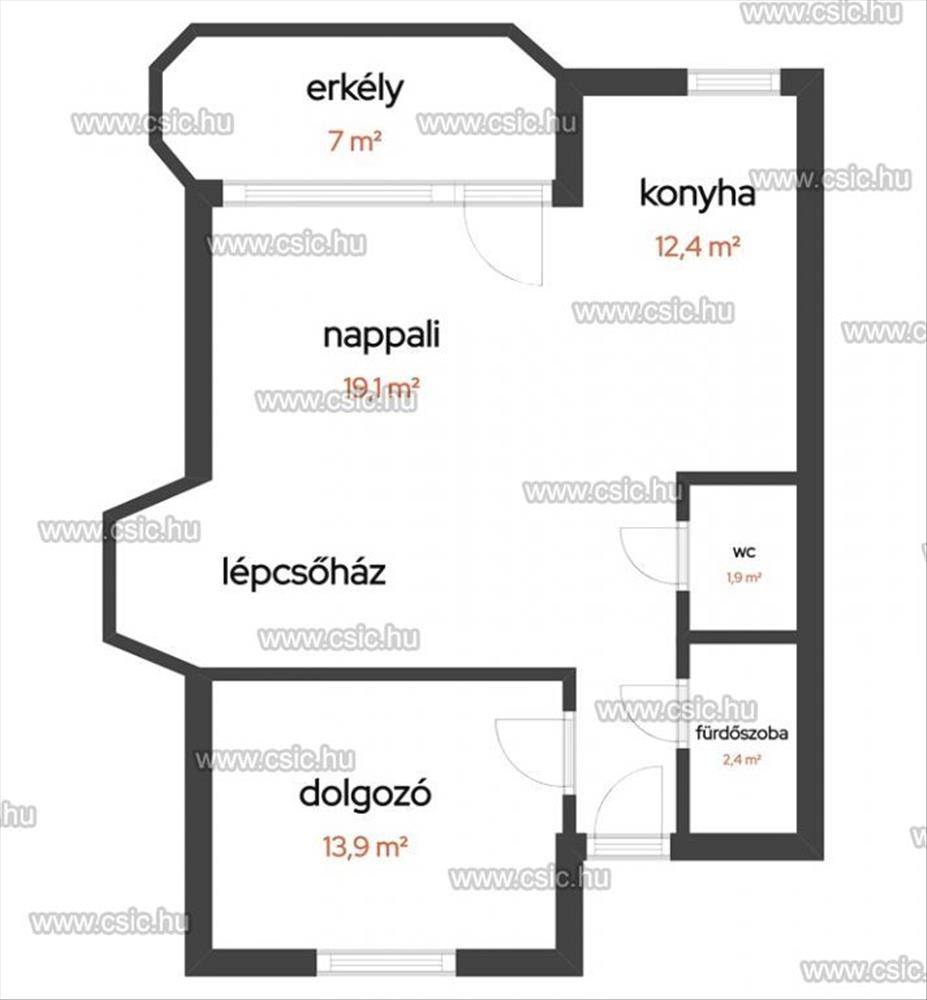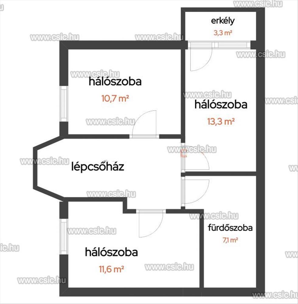 Emeleti szint: előtér, 3 db külön bejáratú hálószoba, erkély, kádas fürdőszoba + wc