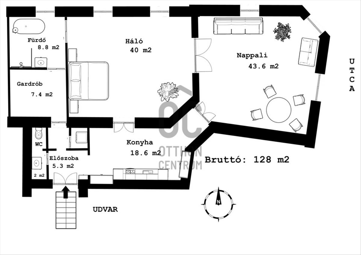 • Valós alapterület: 128 m² (tulajdoni lapon 110 m²)
