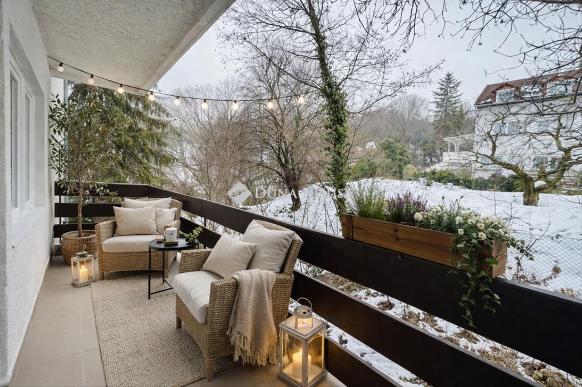 Eladó ízlésesen felújított, igényes lakás Rózsadomb, Szemlőhegy zöldövezeti részén, a 2. kerület egyik legszebb környékén! a társasház a Szemlőhegy csendes, ősfákkal szegélyezett részén, a Kavics utcában található, nyugodt mellékutcában, mégis kiváló városi kapcsolatokkal. Méret: 52 nm + 8 nm -es erkélyElrendezés: nappali + 2 külön nyíló hálószobaTartozék: saját gépkocsi-beálló + kertkapcsolat! a lakás jellemzői:Teljes körű, minőségi felújítás: új elektromos hálózat, vízvezetékek, padlófűtésModern, energiatakarékos nyílászárókGondosan megtervezett elrendezés: két külön nyíló hálószoba, mindkettő saját gardróbbalTágas amerikai konyhás nappali, közvetlen kapcsolattal a 8 nm -es erkélyhezZöldövezeti környezet, saját kert, mégis perceken belül elérhető a belvárosElhelyezkedés:A Széll Kálmán tér, a Margit híd, a Margitsziget és a Duna-part néhány perc alatt elérhető. a környék nívós, biztonságos és hangulatos, kávézókkal, éttermekkel és parkokkal. Ideális választás azoknak, akik a városi kényelmet és a zöld környezet nyugalmát egyszerre keresik. Extrák:Saját autóbeálló a ház udvaránSaját kertkapcsolatAlacsony rezsi, korszerű gépészetRendezett társasház, kis lakóközösségEz a lakás ritka lehetőség a 2. kerületben: stílusos, harmonikus otthon, amely egyszerre sugároz nyugalmat és eleganciát. Költözz be még idén Szemlőhegy zöldövezeti varázsába, a város szíve mellett!