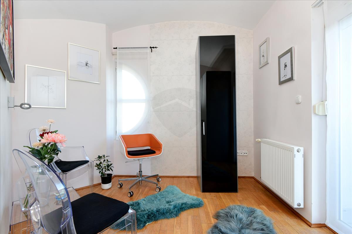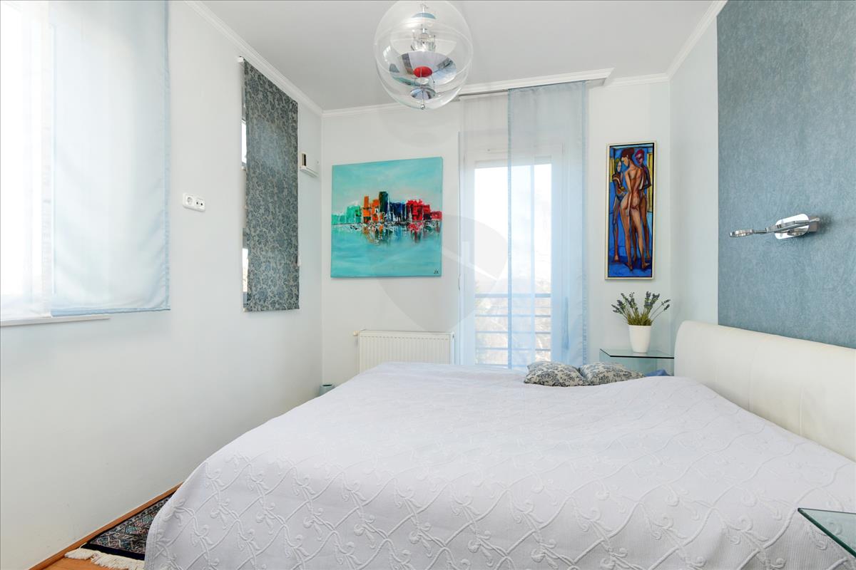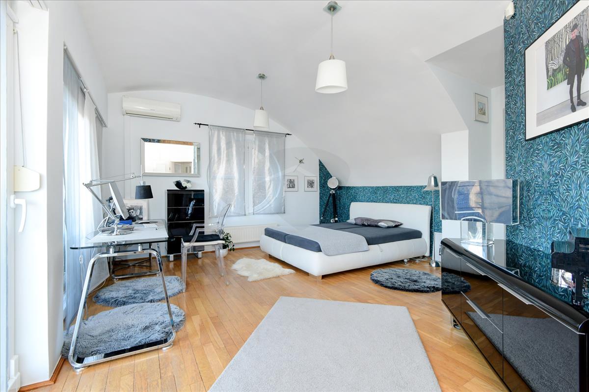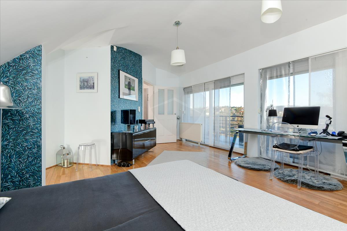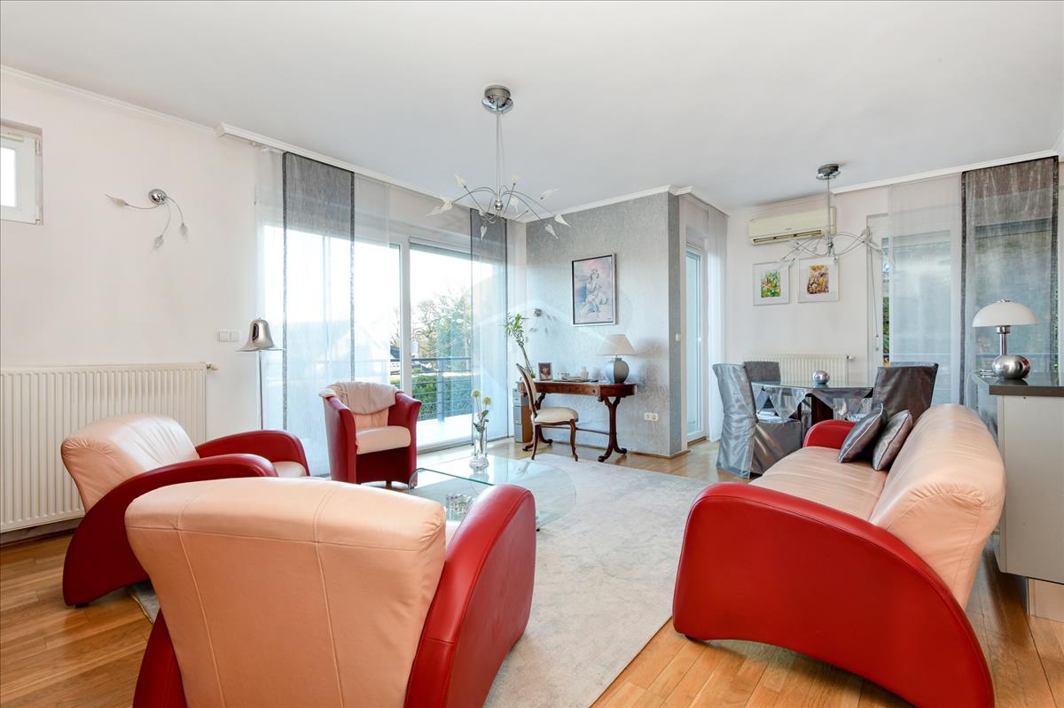 ELADÓ a II. kerületben, (1029) Máriaremetén, egy 3 + 1 fél szobás, belső kétszintes, 110 nm -es (bruttó 125 nm a teraszokkal), újszerű, klímás, panorámás, 1. emeleti lakás.