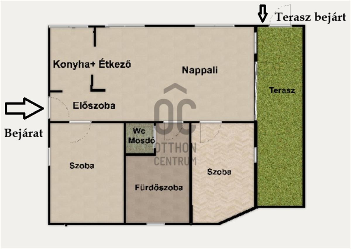 Színvonalas helyen, amerikai konyha+ étkező, nappali plusz 2 hálós, fürdőszobás, dk fekvésű teraszos lakás
