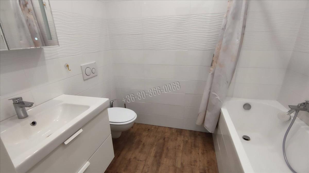 A szintén 2 éve felújított fürdőszobában kád, mosdó, toalett és törülközőszárító található.