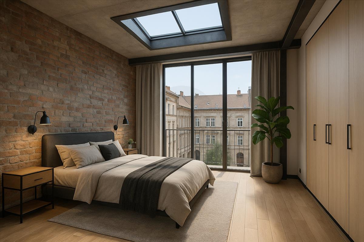 A lakás 5, 5 méteres belmagassága lenyűgöző térérzetet és különleges építészeti karaktert kölcsönöz a jövőbeli otthonnak.
