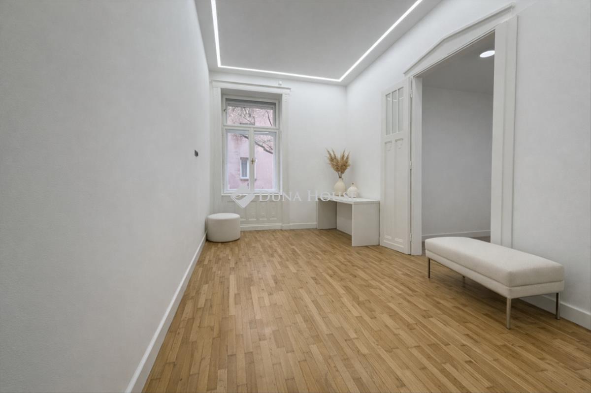 Ebben a környezetben kínálunk megvételre egy 100 m²-es, igényesen felújított lakást, amely egy liftes, téglaépítésű társasház félemeletén található. a 3 métert meghaladó belmagasság és a jól átgondolt térszervezés kellemes, tágas térérzetet ad az ingatlannak.