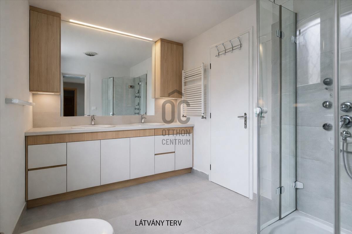 A két külön nyíló hálószoba szintén tágas tereket biztosít, beépített bútorokkal segítve a tárolási lehetőségeket, illetve az egyikhez saját külön (ablakos) gardrób szobával. Rendelkezésre áll a fő hálószobából egy saját fürdőszoba, zuhanyzóval, s finn szaunával, s innen nyílik a saját gardrób is. Az előszobából nyílik egy másik fürdőszoba is, szintén zuhanyzóval + wc.
