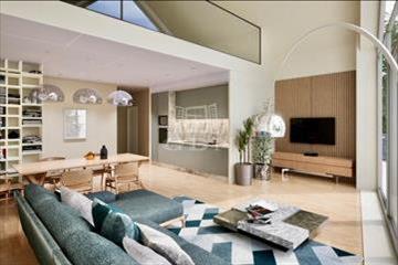 Az alső szinten lévő belső kétszintes 158 m2 nettó alapterületű lakás közvetlen kertkapcsolattal rendelkezik.