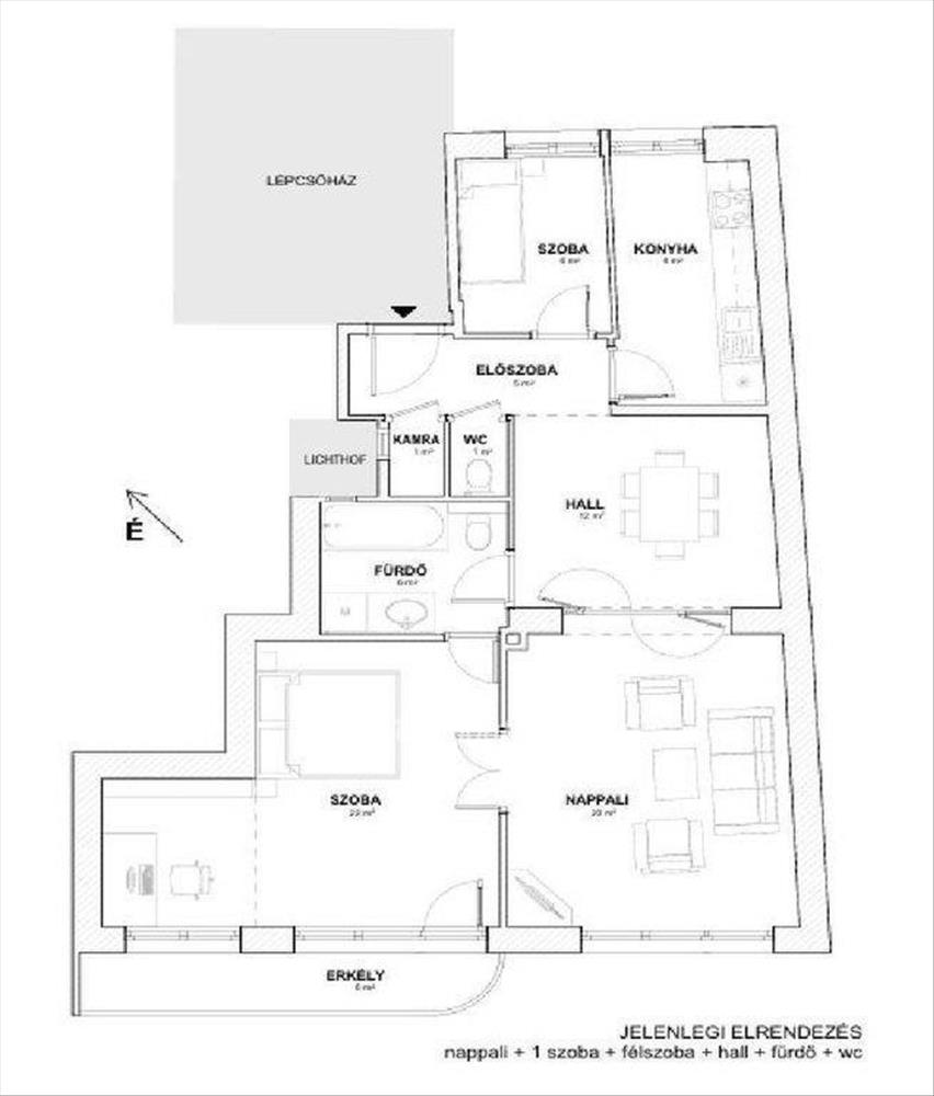 Főbb jellemzők: 84 nm alapterület, 2 + fél szoba + hall (könnyen alakítható akár 3? 4 Szobássá), erkélyes, világos terek, 2, 9 m belmagasság, két tájolás (dny, ék) egész napos természetes fény, legfelső szint, nincs felső szomszéd, saját 6 nm -es pincetároló, közös, zöld belső kert használata.
