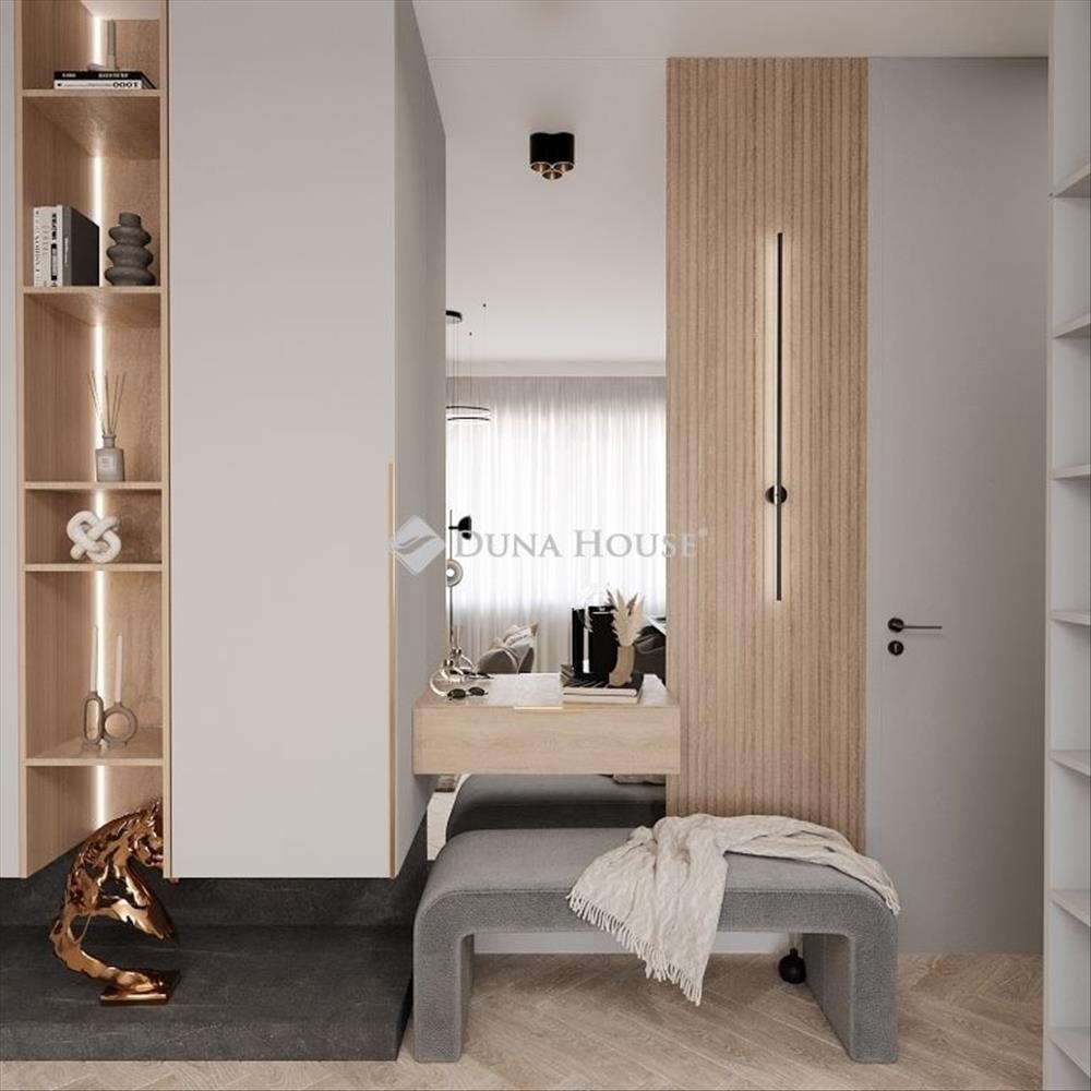 Minőségi bútorok és berendezési tárgyak (konyhabútor, felső kategóriás Bosch gépekkel, beépített bútorok, gardrób, a képen látható összes design elem, lámpa testek, függönyök, szőnyegek és bútorok).