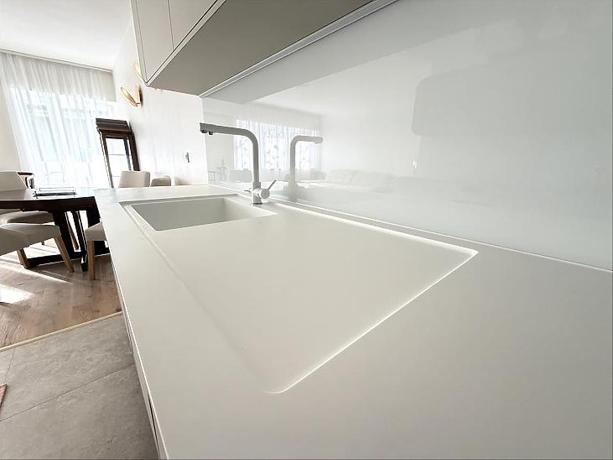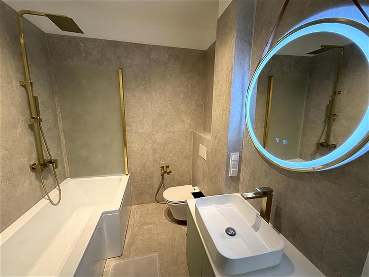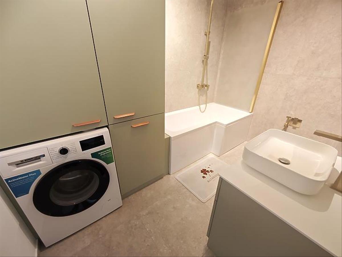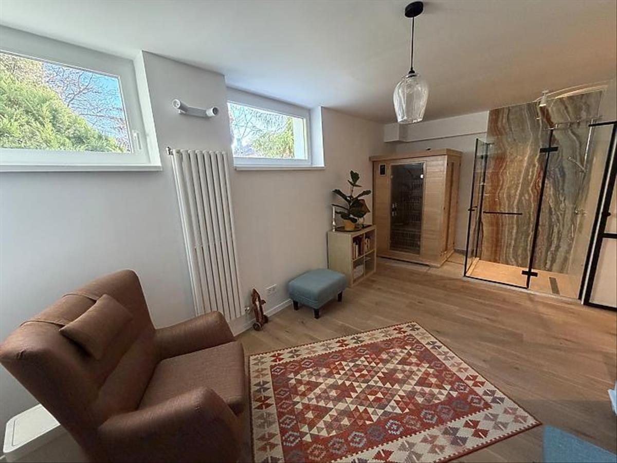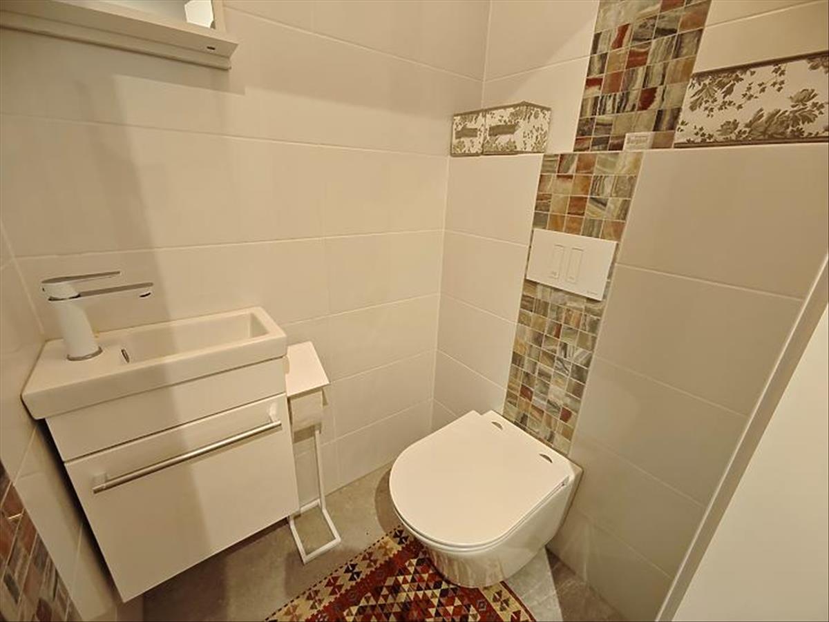 Az ingatlan fűtéséről egy Bosch kondenzációs kazán gondoskodik, a felső szinten padlófűtéssel, az alsó szinten pedig radiátoros fűtéssel. Szintén bekerült egy ultrahangos vízlágyító is. Mindkét szinten prémium minőségű burkolatok és szaniterek kerültek kiválasztásra és le-, illetve behelyezésre.
