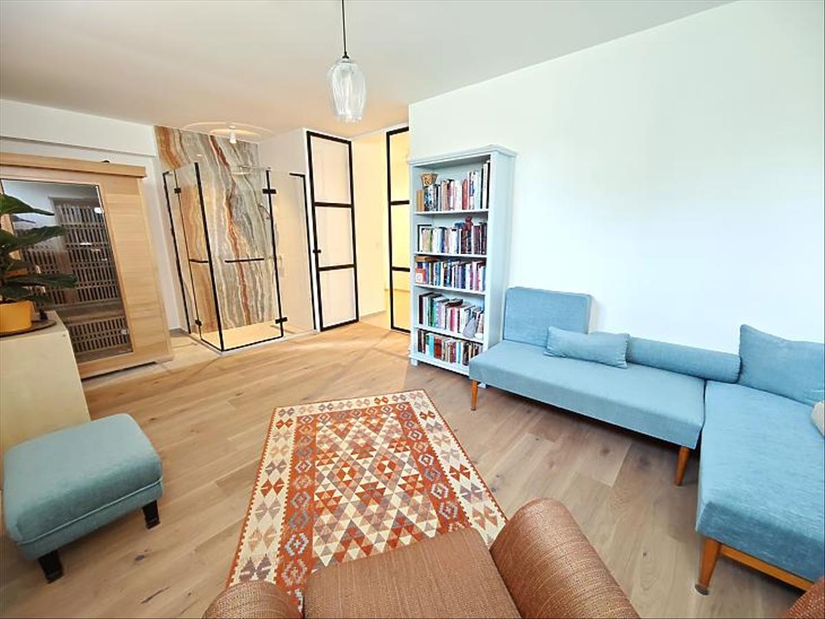 Az alsó szinten egy egyedi szoba kapott helyet. Egyediségét a beépített zuhanykabin és az infraszauna adja. Ezenkívül egy külön wc, egy tároló és a garázs. a garázs parkettázott és szekcionált motoros kapuval ellátott, melynek vételára +15m Ft, kötelezően megvásárolandó.