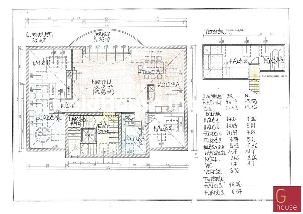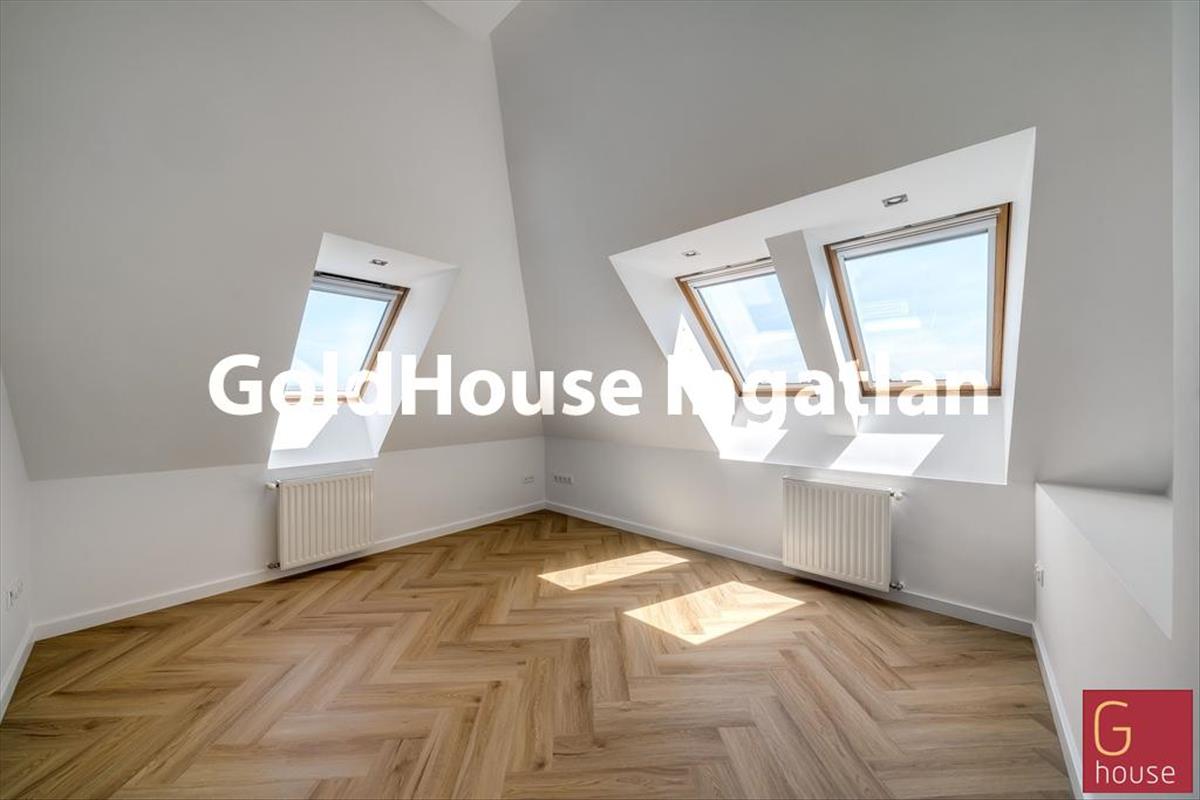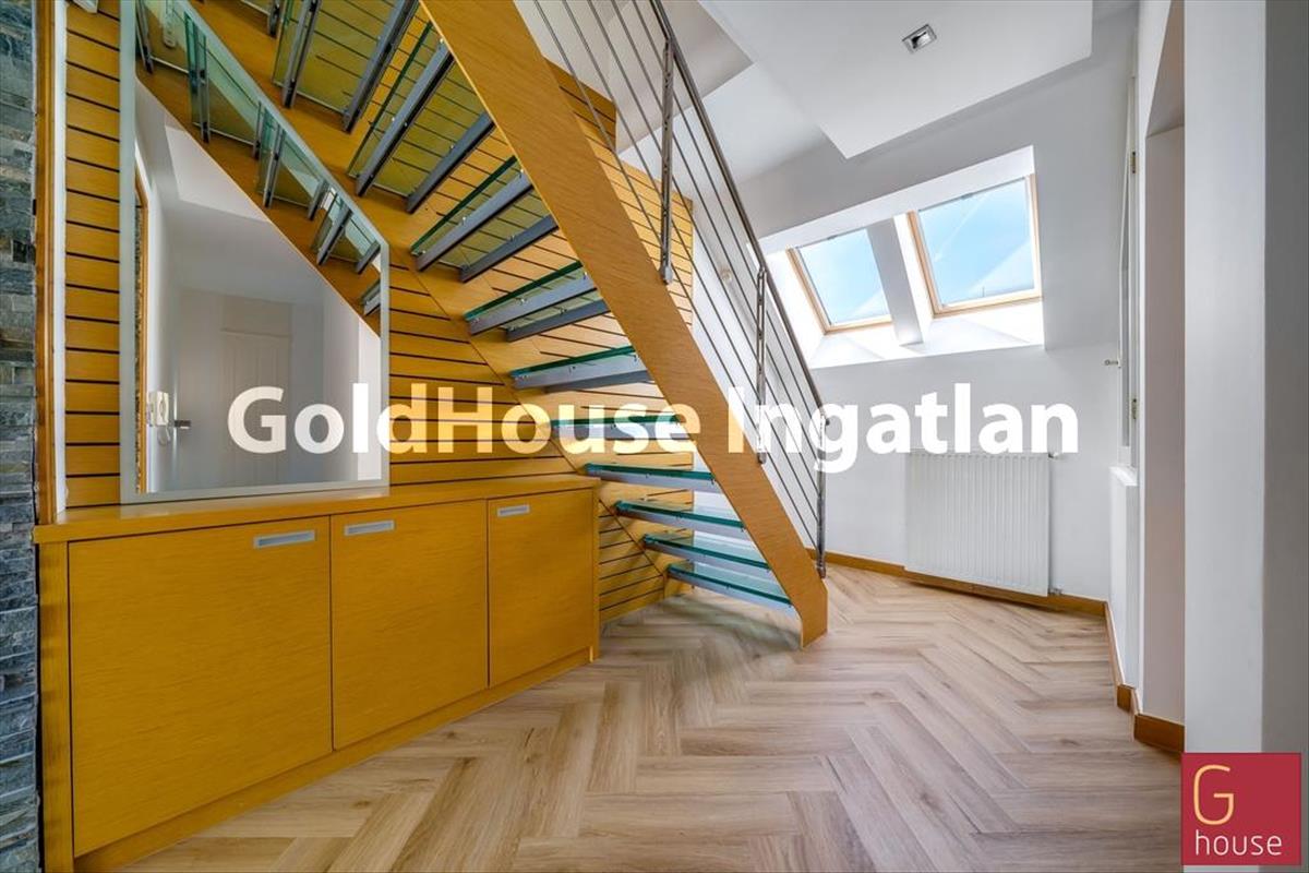 Az alapterületen felül a lakáshoz tartozik egy 27 m²-es, alacsonyabb belmagasságú tetőtér, amelyben egy további szoba és fürdőszoba került kialakításra. Ideális vendégszobának, gyerekszobának vagy dolgozószobának.