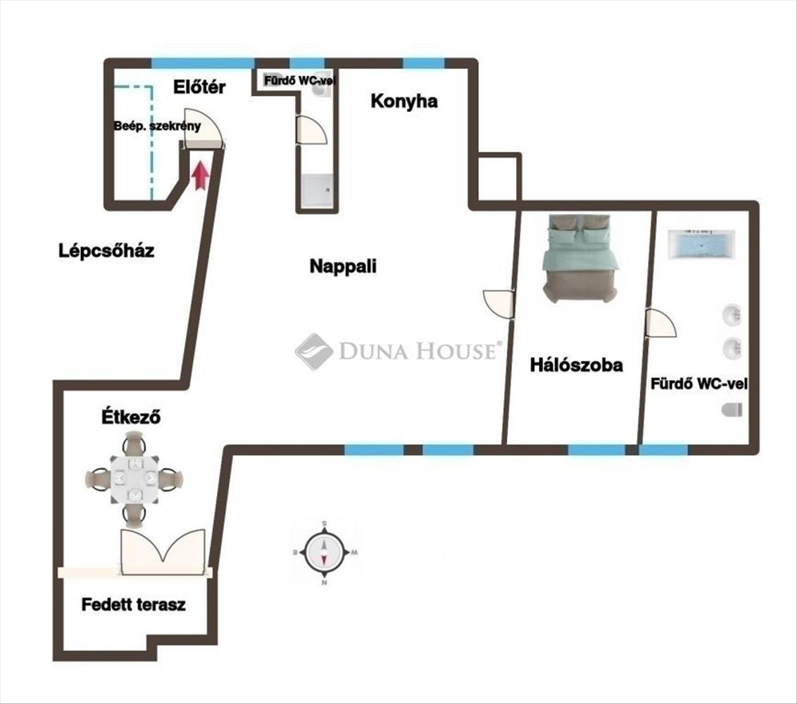 - Tájolás:ÉNY