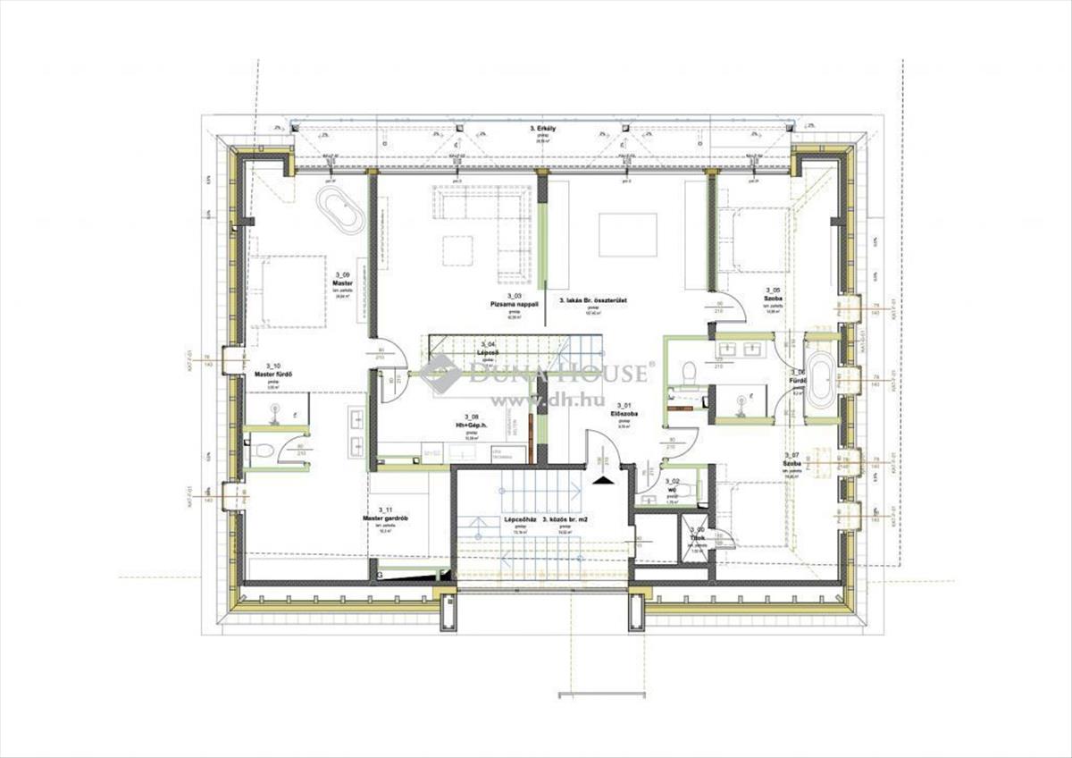 Az alábbi ingatlan 370 nm, amelyből a nettó 287 nm lakóterület, mindezt 128 nm kizárólagos használatú panorámás zöld tetőkert tesz teljessé.