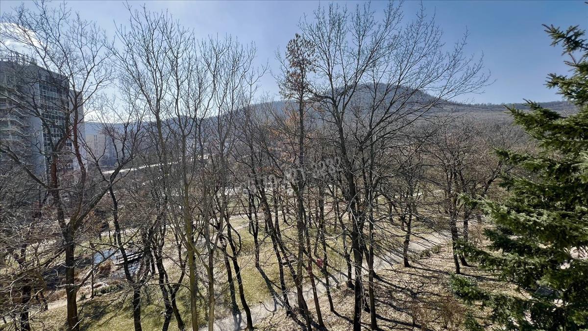 Az épület másik oldalán erdős terület húzódik, így a környezet kifejezetten zöld és nyugodt, erdőközeli.