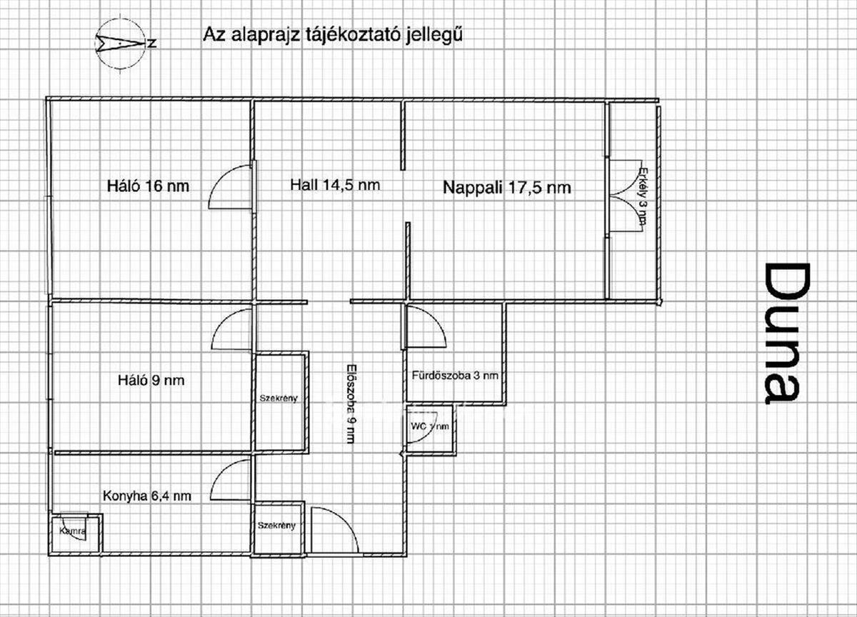 A 79 nm -es lakás egy 5 szintes, liftes, karbantartott társasház első emeletén helyezkedik el.
