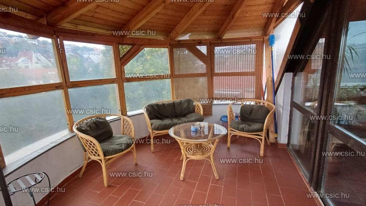 Ezen a szinten van még 2 szoba és egy kádas, és egy zuhanyzós fürdőszoba is, valamint egy kamra. a felső szintre érkezve jutunk a téli kerthez és a kör alakú beépített teraszhoz, ahonnan remek a panoráma a környező dombok felé és a távolban