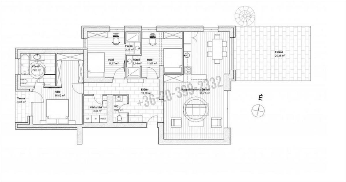 - 3 külön bejáratú háló ( 2 háló 13, 81 nm ; 1 háló 25, 68 nm -es ) a nagyobbik hálóhoz 8 nm -es terasz kapcsolódik )