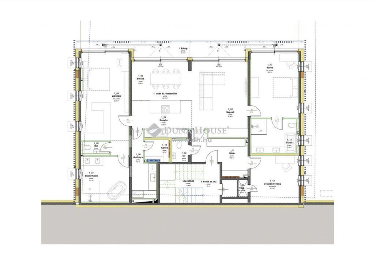 Az alábbi ingatlan 220 nm, amelyből a nettó 168 nm lakóterület, mindezt 14, 2 nm-es terasz Tesz teljessé.