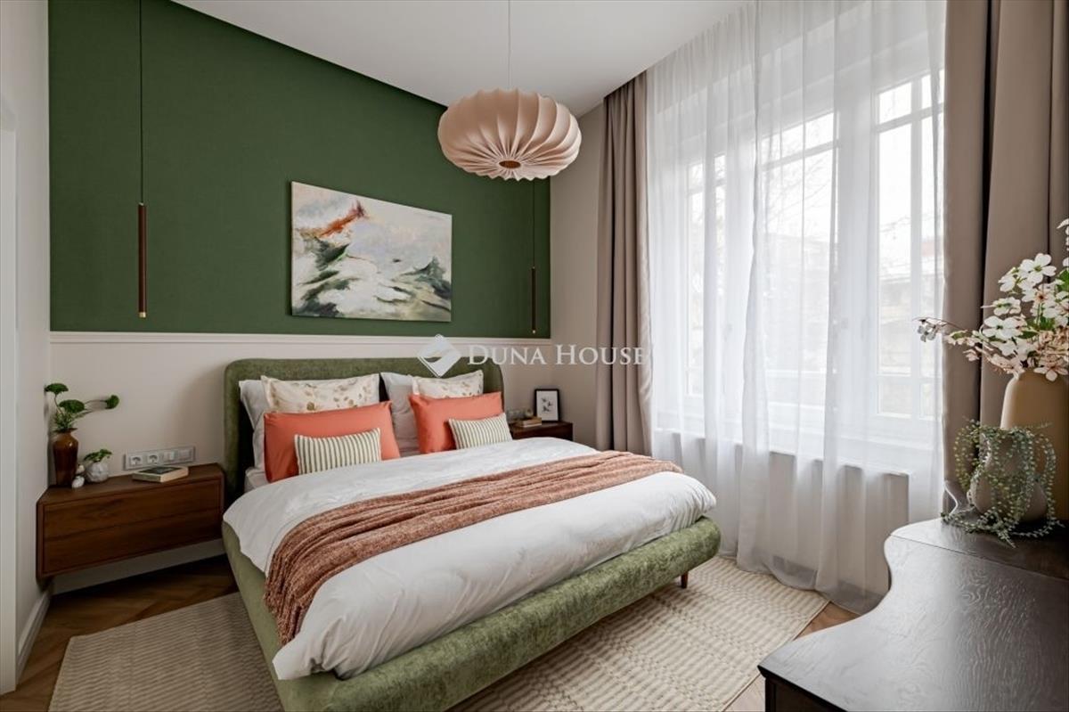 Budán, a Városmajor közvetlen közelében megvásárolható egy 65 nm -es, 2. emeleti, erkélyes, teljeskörűen felújított lakás a 2. kerületi Trombitás Ház ikonikus épületében. Minden helyiség csendes, belső zöld kertre néz, ami ritka és értékes adottság a városi környezetben. AZONNAL beköltözhető, átgondolt, harmonikus elrendezésével prémium életminőséget kínál. Lakás és elrendezésA lakás világos terei praktikusak és harmonikusak. a nappali mellett két hálószoba, két fürdőszoba, gardrób, külön konyha kő munkapulttal és mosókonyha áll rendelkezésre. a konyha bosch beépített gépekkel felszerelt, a tárolókapacitás bőséges, a kamraszekrény pedig praktikus és időtálló megoldás. a nappali és a hálószobák a kertre néznek, így minden helyiség csendes és nyugodt. Műszaki tartalomA felújítás minden részlete a hosszú távú komfortot és biztonságot szolgálja. a lakásban új fa nyílászárók, korszerű cirkófűtés és teljes klimatizálás található. a konyhában, előtérben és fürdőkben padlófűtés-érzet biztosítja a kellemes hőérzetet. Megújult a villamoshálózat és a vízvezetékek, a szomszédos lakások felé hanggátló falak kerültek beépítésre. a nappaliban és a főhálóban elektromos redőnyök, a biztonság érdekében távfelügyeletre köthető riasztó és biztonsági üvegezés található. Privát terek és funkcionalitásA nappaliból nyíló főháló saját zuhanyzós fürdővel és gardróbbal rendelkezik. a második háló vendégszobának, dolgozószobának vagy gyerekszobának is ideális, nagyméretű beépített gardróbbal, szintén csendes, kertre néző kilátással. a mosókonyhában található a cirkó és itt került kialakításra a mosó- valamint szárítógép helye. Ház és lokációA társasház rendezett, folyamatosan karbantartott, kamerával felszerelt, két lifttel rendelkezik. Az elmúlt években megújult a tető, a Trombitás utcai homlokzat és a villamoshálózat. a fő lift felújítása előkészítés alatt áll. a környék tökéletes a városi élethez. a villamosmegálló közvetlenül a ház előtt található, a Széll Kálmán tér sétatávolságra van, a Városmajor park közvetlenül szemben. Parkolás: bérelhető, kamerázott teremgarázs a bejárattól 3 perc sétára, valamint a környező utcákban, akár kijelölt lakossági zónában, jellemzően megbízhatóan ELÉRHETŐ. Ez az otthon kifinomult, értékálló, harmonikus és ritka lehetőség. Ha egy prémium minőségű, csendes, zöldre néző lakást keres Budán, akkor ez az otthon önre VÁR. Az ár tartalmazza az összes beépített bútort. További berendezési tárgyak külön megállapodás alapján elérhetők. a lakás azonnal megvásárolható, a megtekintés rugalmasan, akár hétvégén is lehetséges. További kérdéseivel, megtekintéssel kapcsolatban keressen bizalommal! Hitel.hu - Hasonlítsa össze a bankok lakáshitel ajánlatait