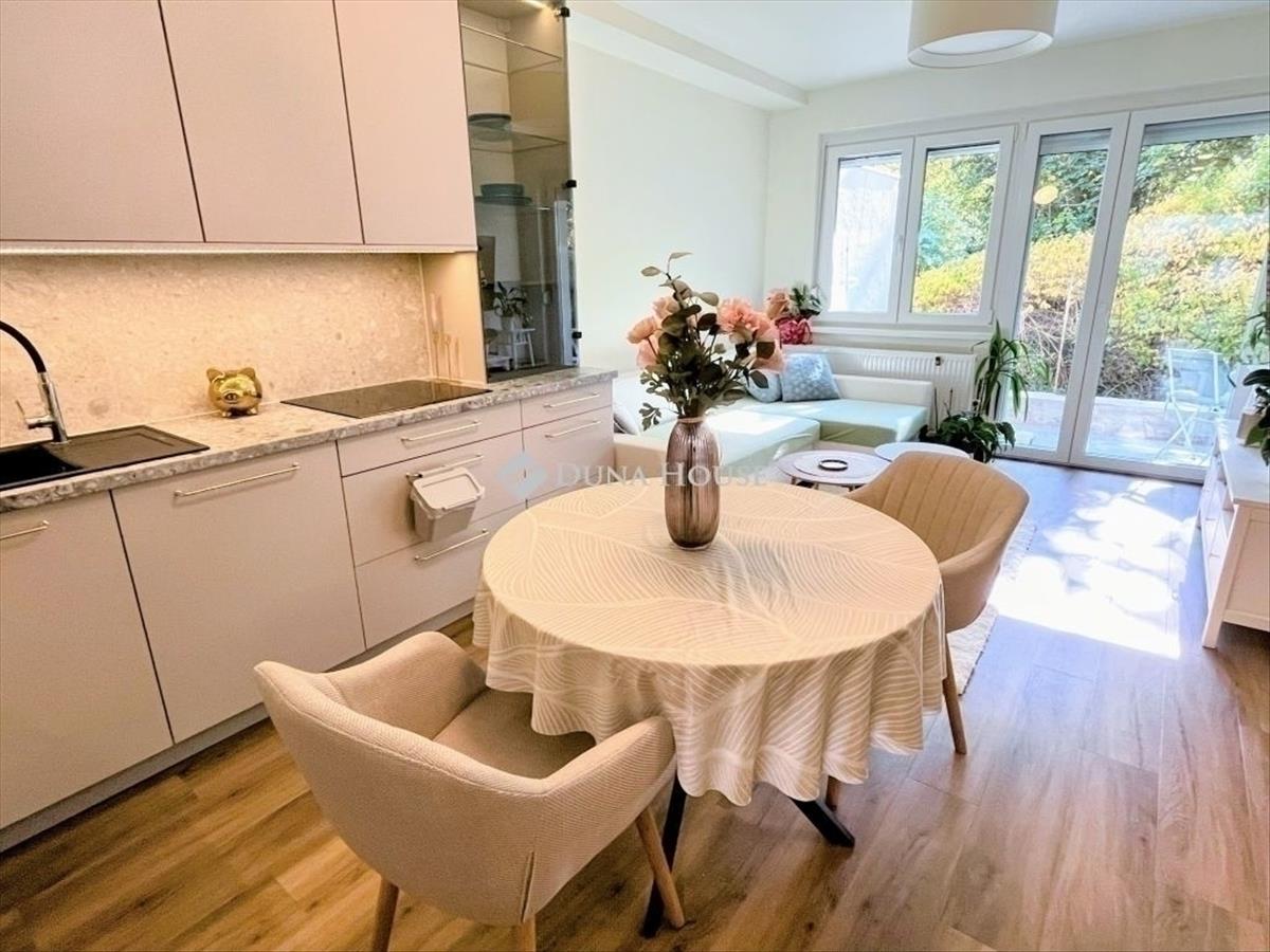 Napfényes, átgondolt, prémium minőségű otthon PasarétVirányos határánEladó egy minden részletében megtervezett, építész és belsőépítész által tervezett, teljes körűen felújított, földszinti (lépcsőzés nélküli) lakás a II. kerület Kurucles városrészében, PasarétVirányos határán, csendes, rendezett környezetben. a 60 m²-es (tulajdoni lapon 66 m²) otthon napfényes, déli fekvésű kertre néző terekkel és intim, saját terasszal rendelkezik, ahol nincs belátás csak a kert és a nyugalom. a lakás főbb jellemzői:Átgondolt, építészeti precizitással megtervezett térkialakításNappali + 2 külön nyíló szoba2 fürdőszoba és 2 WCKülön háztartási helyiség ritkaság ebben a méretkategóriábanGázcirkó fűtés, kiegészítve elektromos padlófűtéssel a maximális komfortértPrémium anyaghasználat: új burkolatok, radiátorok, csövezés, elektromos hálózat (3×16a), rejtett tolóajtók, minőségi nyílászárókNagy méretű, modern konyha aeg beépített gépekkel a vételár részekéntSzámos beépített szekrény és rejtett tároló megoldásSaját garázs és tároló, valamint kertkapcsolatA lakás minden részletében a tudatos tervezés köszön vissza: nemcsak szép, hanem élhető, logikus és hosszú távra is kényelmes otthon. a kivitelezés új, minden gépészet, burkolat és szerelvény frissen cserélt így semmilyen további ráfordítást nem igényel. a ház és környezete:Rendezett, gondozott kert, parkosított udvarKulturált, igényes lakóközösségCsendes, zöldövezeti környezet, kiváló közlekedéssel Parkolás:Saját, zárható garázsTovábbi tárolóhely a lakáshoz tartozikEz az otthon fiatal pároknak, kisgyermekes családoknak, vagy idősebbeknek is ideális választás: kényelmes, lépcsőzésmentes, napfényes, és minden részletében harmóniát sugároz. Világos, praktikus és elegáns egy otthon, amit élni terveztek, nem csak használni.