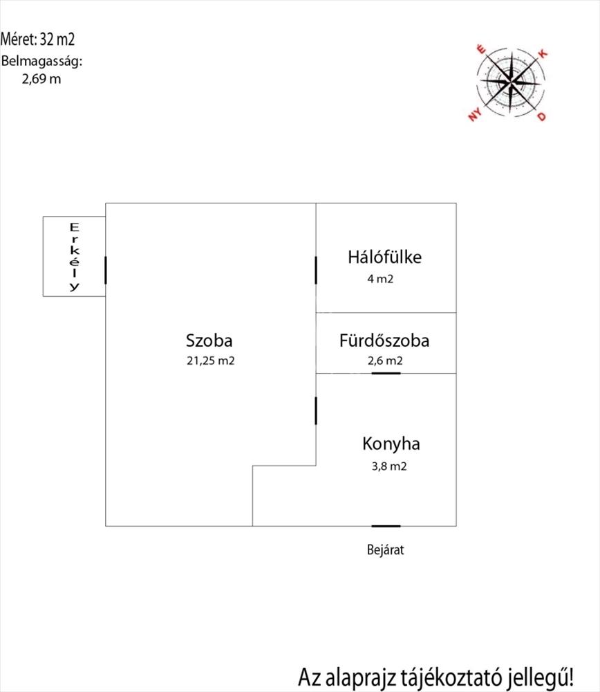 - Alapterület:32 m2