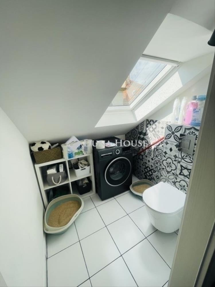 A közlekedőből juthatunk a mosókonyha-wc helyiségbe s e mellett található a kádas fürdőszoba wc-vel, ahol a tusolónak is minden kiállása megtalálható ha valaki a zuhanyzást részesítené előnyben.