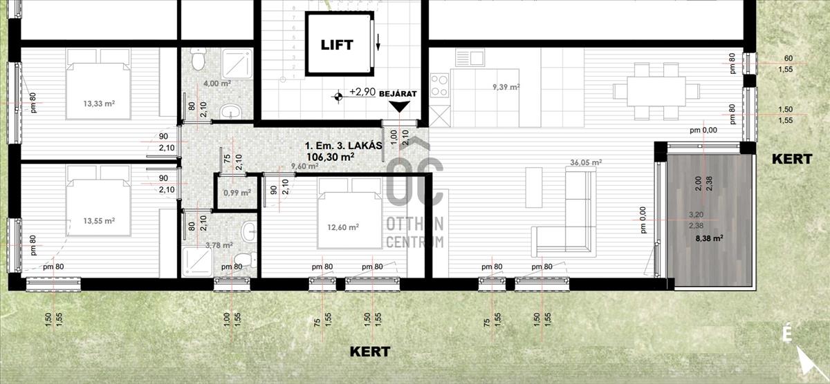 Az ingatlan főfalak által behatárolt területe jelen pillanatban még a leendő vásárlói igényeknek megfelelően alakítható ki: válaszfalak elhelyezése, szobaszám, szobák mérete…. Stb.