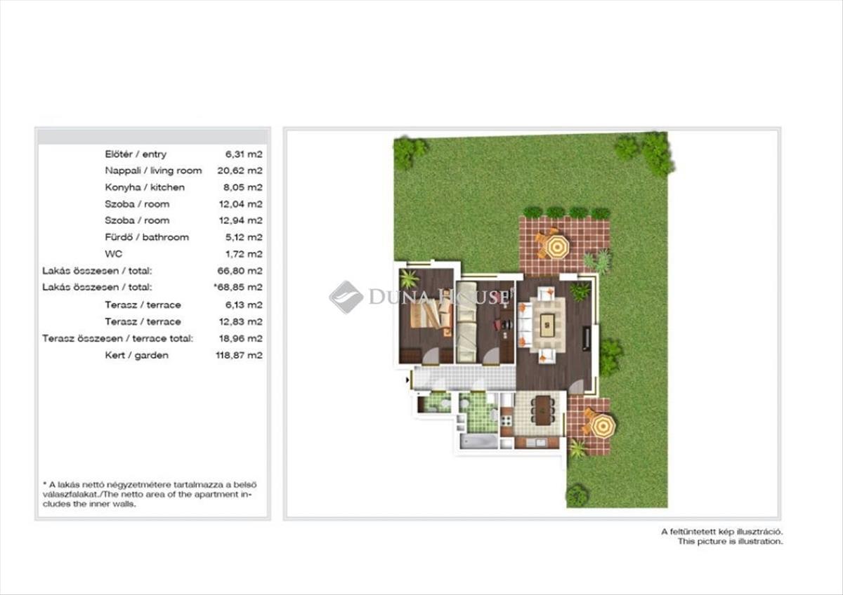 A Római-part életérzés! Ritka lehetőség: Budapest III. kerület Római-part/Pünkösdfürdő legjobb részén, az egyik legjobb Duna-parti lakóparkban eladó egy földszinti, kertkapcsolatos, 2 teraszos, 3 szobás lakás. a lakóterület 67 m2 + 19 m2 terasz + 119m2 kizárólagos használatú kert! Jó beosztású lakás: előszoba, amerikai konyhás nappali, 2 hálószoba, fürdőszoba WC-vel, külön wc, teraszok, a lakást körbeölelő saját kert. a műanyag külső nyílászárókon alumínium biztonsági redőny előkészítés található, valamint a lakásban van klíma előkészítés. a lakásról készült képek a jelenlegi állapotot tükrözik! a fűtést egyedi mérővel felszerelt házközponti rendszer biztosítja, nagyon kedvező fenntartási költséggel. Az ingatlan 2010-ben épült és kiváló állapotban van, építészetileg kiemelkedő színvonalat képvisel és folyamatosan karban van tartva. a társasház zárt 11 500 m²-es saját, folyamatosan gondozott ősfás kerttel rendelkezik, játszótér is kialakított. a lakópark biztonsági kamerákkal ellátott és 24 órás portaszolgálattal őrzött. Az infrastruktúra kiváló, tömegközlekedéssel és autóval is könnyen elérhető. Kiemelt lehetőségek:Közelben található a közel 2 hektáros területű, 1, 5 km hosszban a Dunapart mellett hűzódó Pünkösdfürdő Park, amely teljesen új, ökologikus szemléletmódot képvisel. a gyerekeket különleges hangulatú, hatalmas játszótér és mini focipálya várja, a sportolásra vágyókat kosárlabdapályák, strandröplabda, tornaeszközök, ping-pong asztal, kerékpár szervízpont és 4 petanque pálya fogadja. a kutyások részére egy agility pálya is áll rendelkezésre. Továbbá itt található a Hajós Alfréd tervei alapján létesült Pünkösdfürdői Strand, amely az ősfás környezetben, valamint a rózsalugasok között lévő élmény és úszó medencéivel, valamennyi korosztály részére fürdési, strandolási és kellemes kikapcsolódási lehetőséget biztosít. Az ingatlan árvízvédelmi területen található, így hitelezhető és biztosítás is köthető rá! Legjobb választás:-befektetőknek, mivel az ingatlan könnyen kiadható, -pároknak/családoknak, mivel az ingatlanra jellemző kellemes, kulturált környezet ritkaságszámba megy.