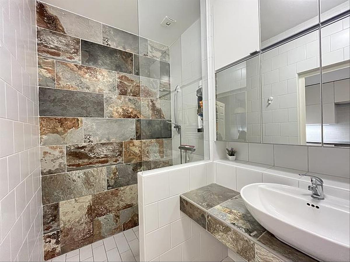A fürdőszobában zuhanyzó van, a mosógép ki-és beállása ebben a helyiségben került kialakításra.