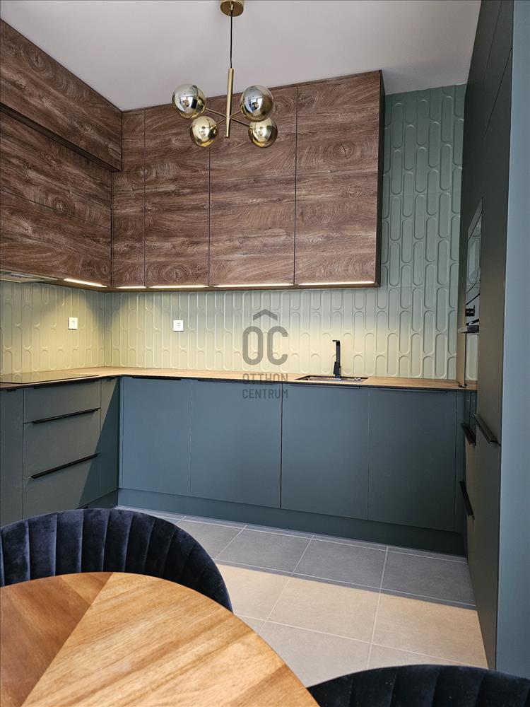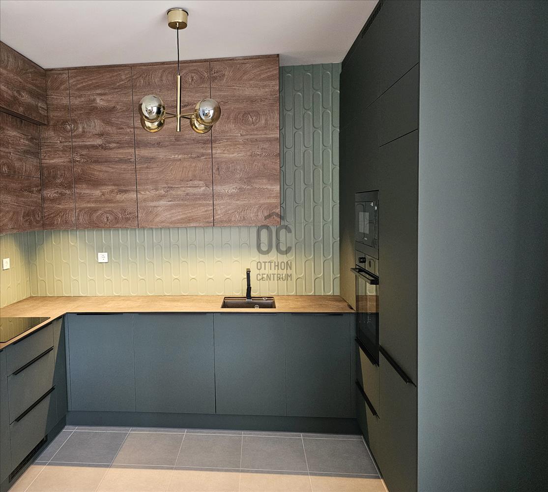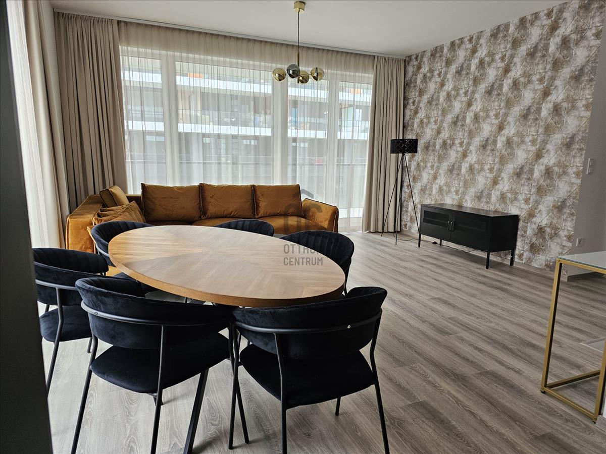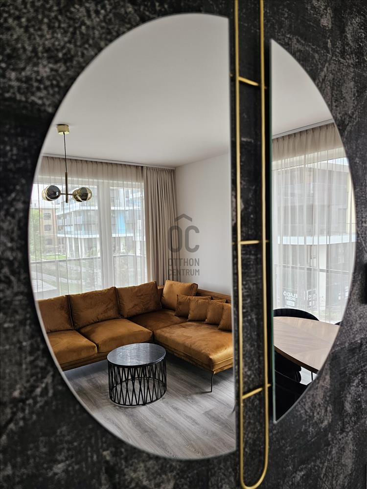 A nagyon szépen art deco stílusú, belsőépítész által tervezett, egyedi bútorokkal berendezett szinte új ingatlan közel található a Duna-parthoz. Az étkezőből a csendes közösségi kertre lehet rálátni, a nappaliból és az első hálószobából nyíló teraszról a Duna és Hajógyári-sziget is látható.