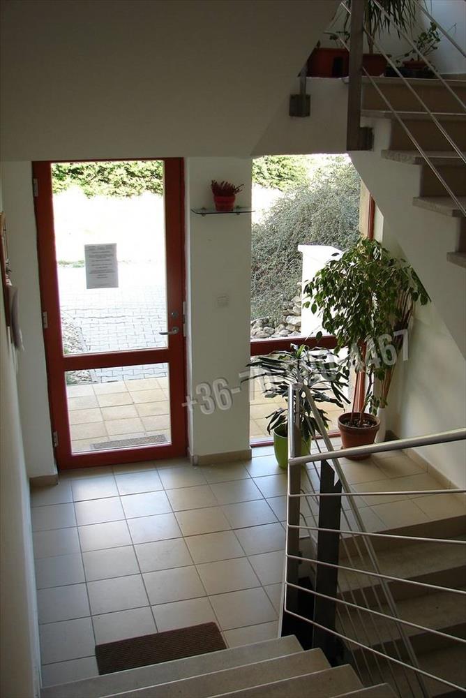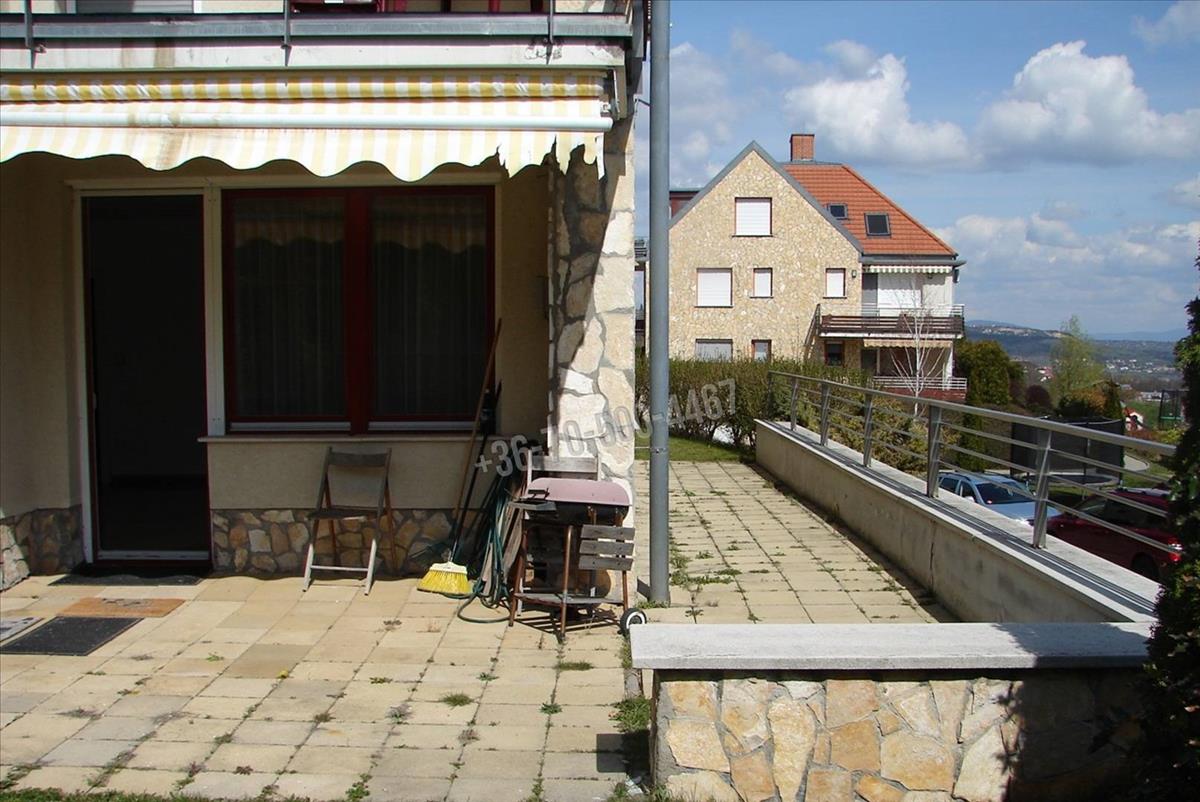 67, 39 m2 alapterületű, földszinti, 100 m2 saját kerttel. Elrendezése nappali + 2 hálós, gépesített konyhás, fürdős, külön wc-s lakás, több, mint 30 mn-es terasszal. a szobák parkettásak, a többi helyiség kő burkolatos, ez utóbbiakban padlófűtés van. a lakásból illetve a saját kertből el lehet látni Szentendréig illetve az Árpád-hídig.