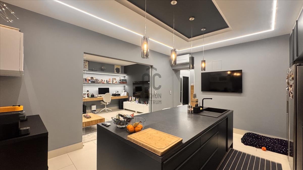 A lakás egyik legnagyobb értéke a nagyméretű, esztétikus konyha, amely konyhaszigettel felszerelt, ideális választás mindennapi használatra és társasági élethez egyaránt.