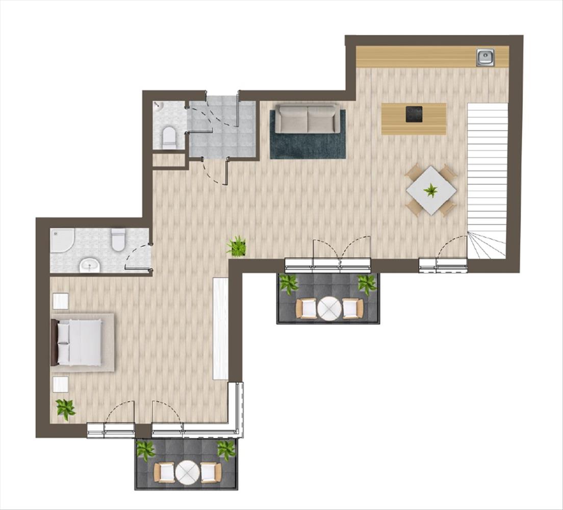 Amerikai konyhás nappali, igény szerint 2 vagy 3 hálószoba kialakítással, kettő nagy méretű fürdőszobával, egy külön vendégmosdóval, hatalmas terasszal és 3 db erkéllyel rendelkezik a lakás. a burkolatok, szaniterek és beltéri ajtók kiválasztása az új tulajdonosra vár. a lakás nagyon világos, a D-i tájolásának és a rengeteg üvegfelületnek köszönhetően.