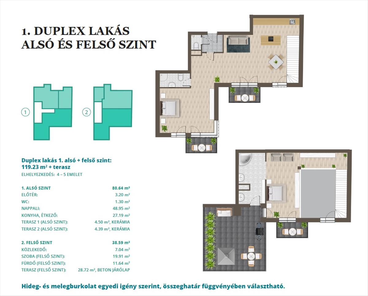 Az ingatlan az épület 4. És 5. Emelét helyezkedi el, részben panorámás kilátással!