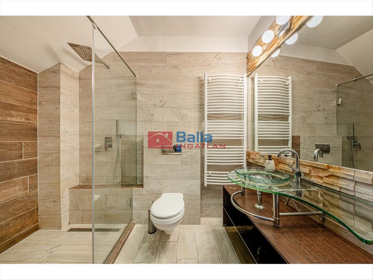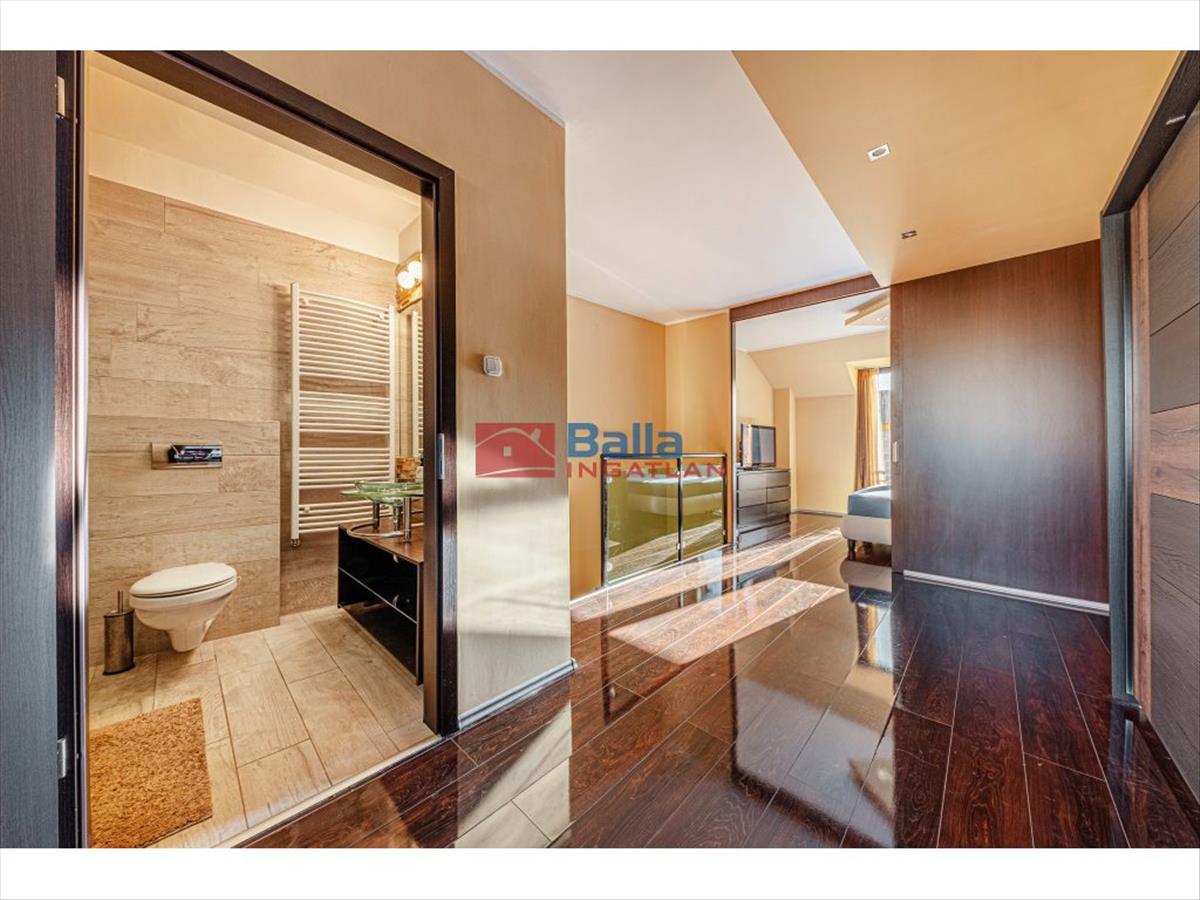 Mindkét szinten két-két franciaerkély nyit lehetőséget a természetes fény beáramlására és a kellemes kilátás élvezetére. a lakás belsőépítész által megálmodott, modern és fiatalos stílusban került kialakításra, különleges, egyedi megoldásokkal, így az új tulajdonos egy igazán karakteres és azonnal költözhető otthonba érkezhet.