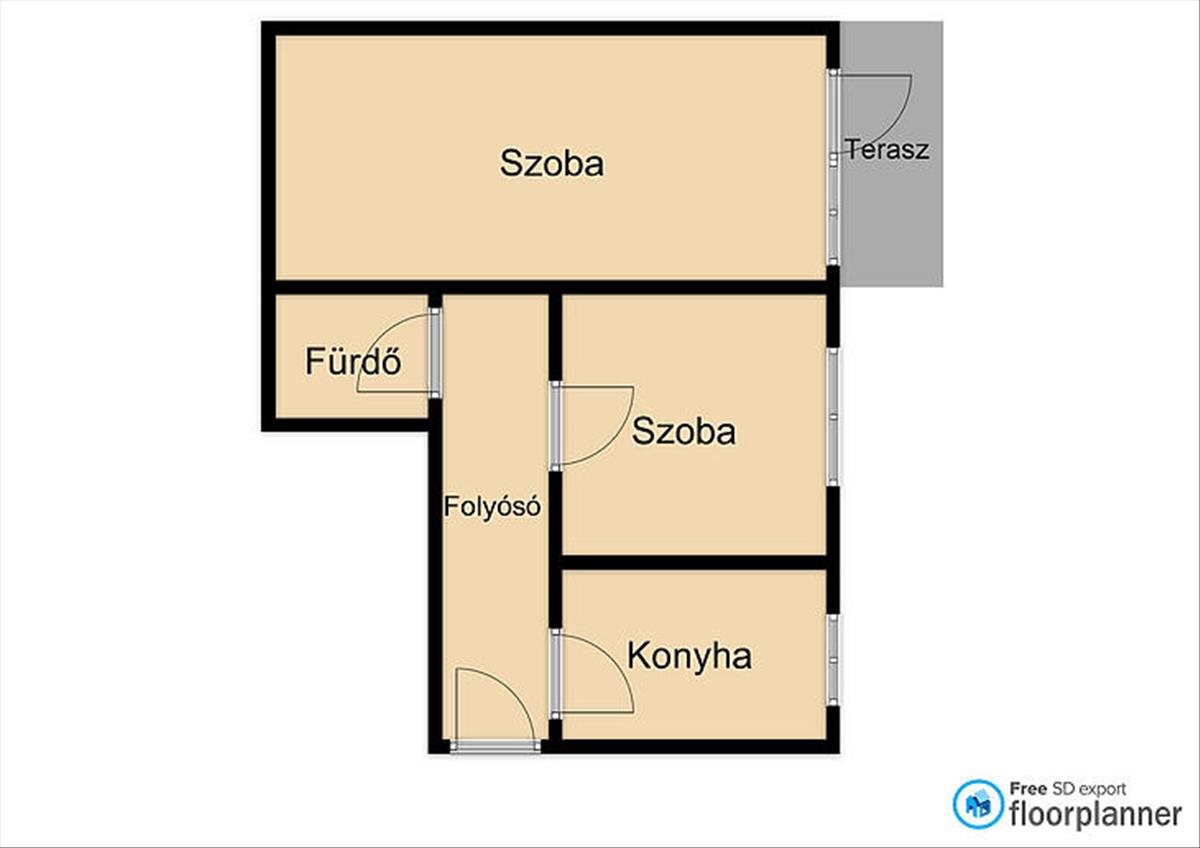 Az ingatlan 2 szobás elosztású előszobával, fürdővel és konyhával.