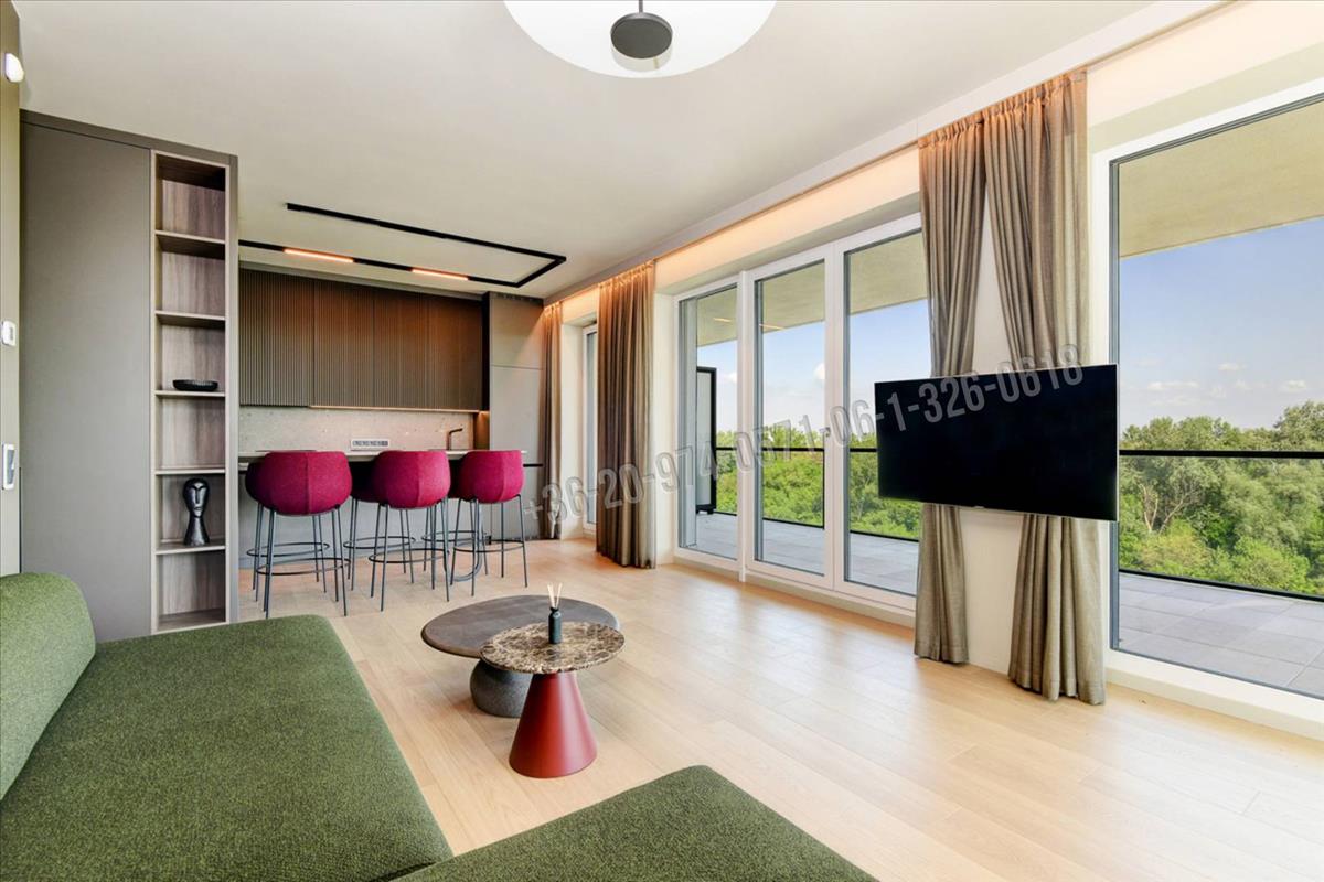 A Waterfront City új építésű lakóparkban, Óbuda szívében, a III. kerületben a Duna-parthoz közel, Folyamőr utcában eladó 2023-ban épült, 6. emeleti 55 nm -es 2 szobás, luxus kivitelezésű panorámás lakás, kilátással a Dunára és az Óbudai-szigetre, L alakú hatalmas 44 nm -es terasszal.
