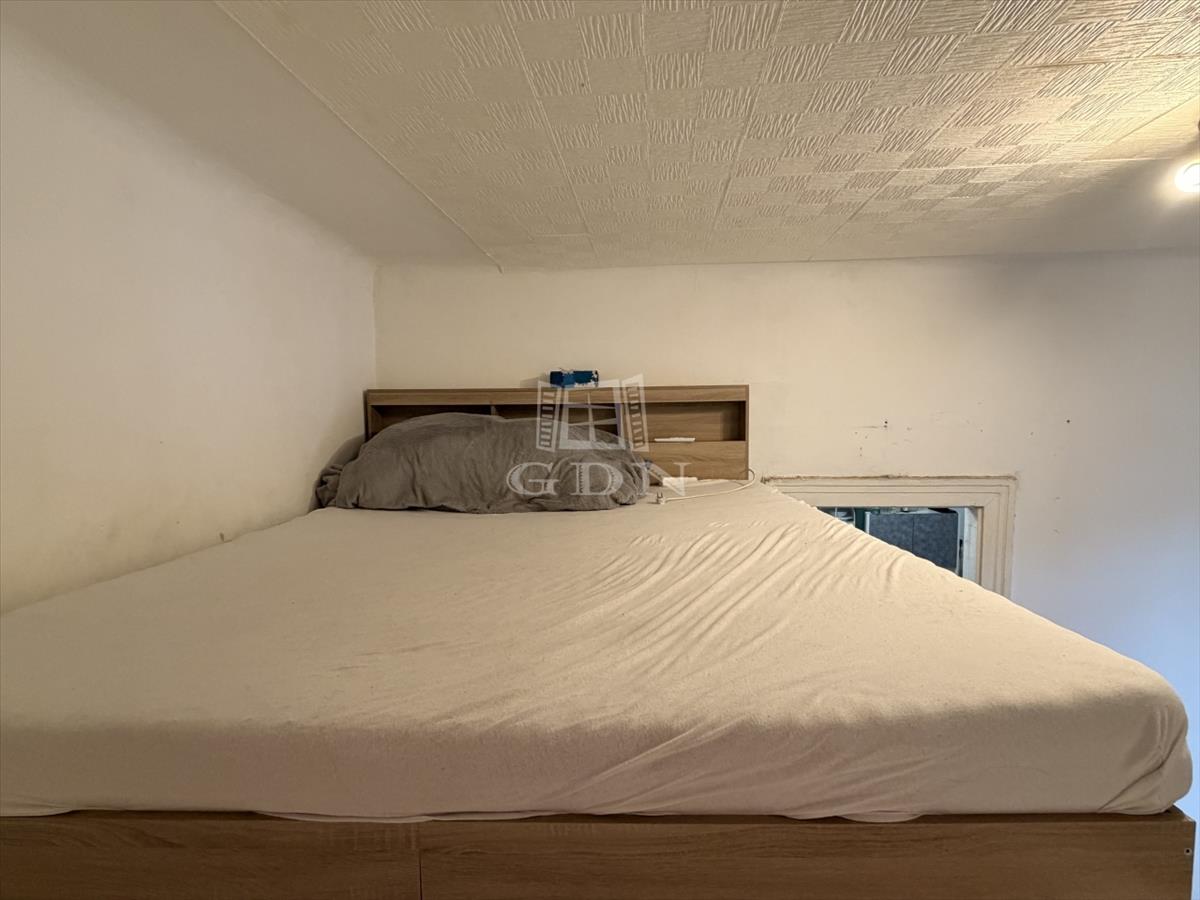 Az előszobából nyílik egy tágas szoba, ami galériázva van, a galérián bőven elfér egy francia ágy, kis polccal.