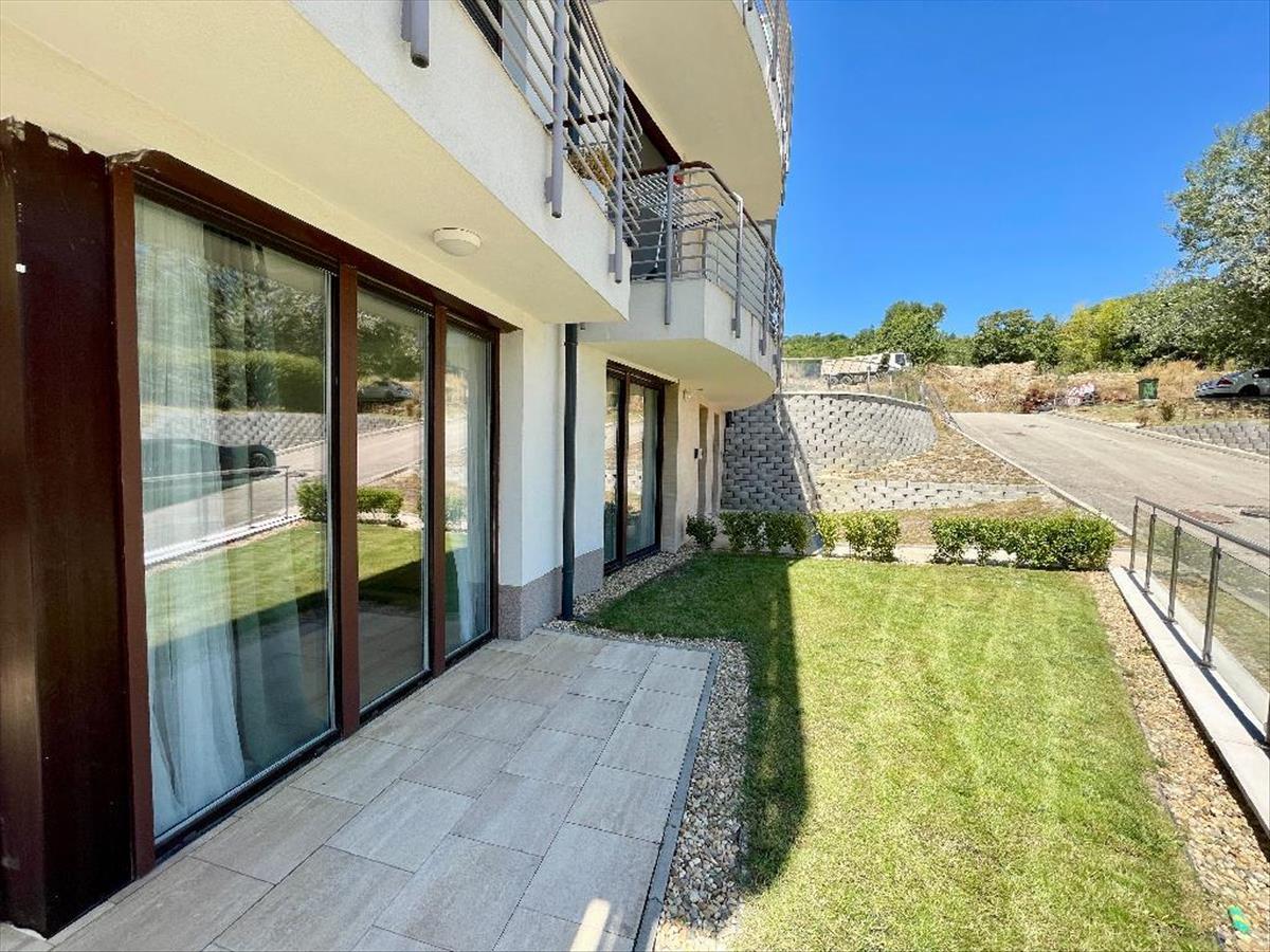 A 77 sqm, 2-bedroom, ground-floor, panoramic apartment with direct garden access is for sale in the Forest Hill residential park in the 3rd district. The spacious, bright, American-style living room with kitchen is southeast facing, from here you can open up to the 12 sqm covered terrace and the private garden. The two bedrooms are located on either side of the living room, making it an ideal layout for a family or a home office.