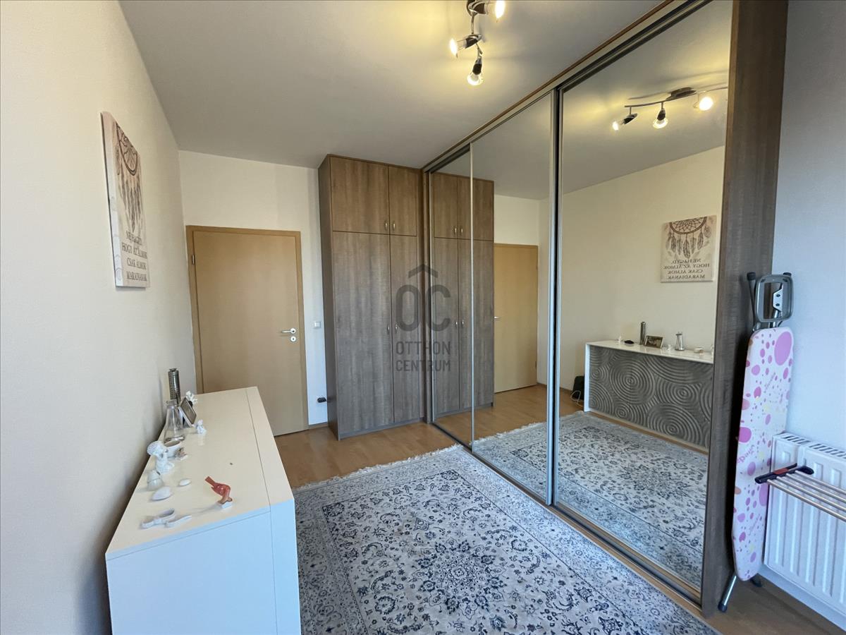 A lakás amerikai konyhás nappalija (22 m²) gépesített, beépített konyhabútorral, mosogatógéppel felszerelt. a két külön nyíló, parkettás hálószoba (10 m² és 12 m²) ideális akár gyerek-, dolgozó- vagy vendégszobának.
