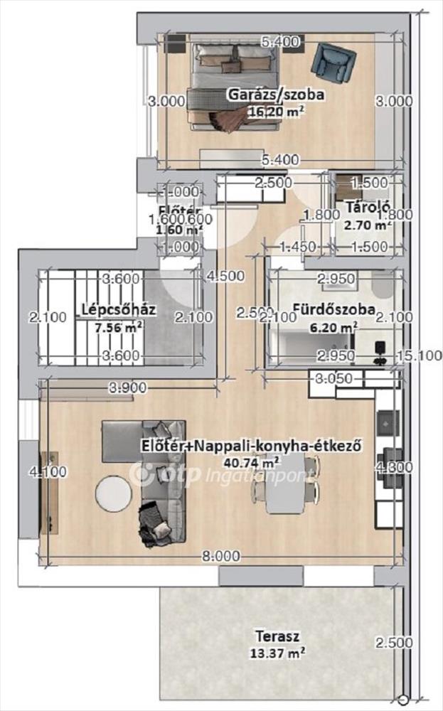 A megadott ár a kulcsrakész állapotra vonatkozik, 20%- kal szerződhető, a fennmaradó 80% birtokbaadáskor fizetendő.
