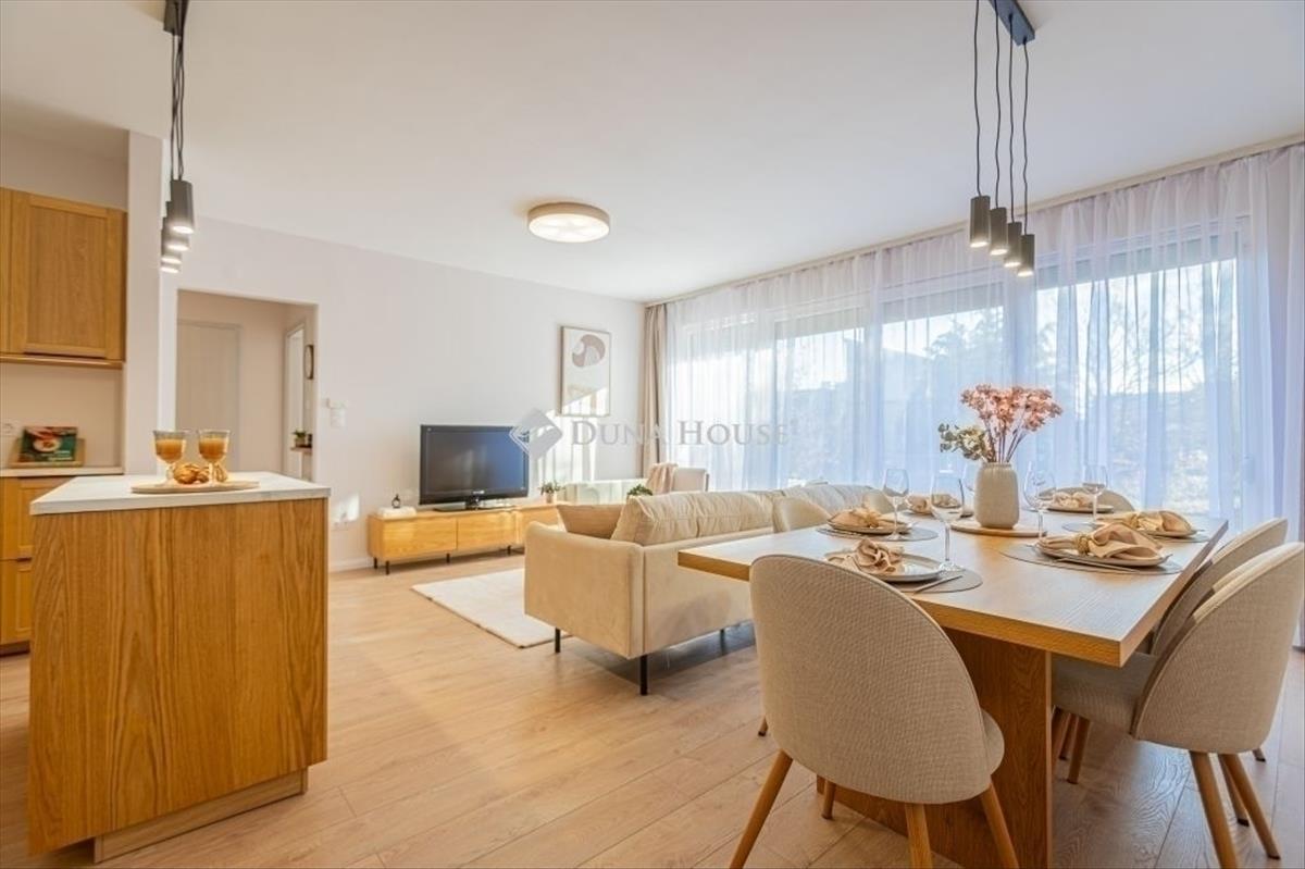 Kertkapcsolat, nagy terasz, friss felújítás, modern konyha, külön tároló, teremgarázs mindez egy csendes, biztonságos óbudai lakóparkban.