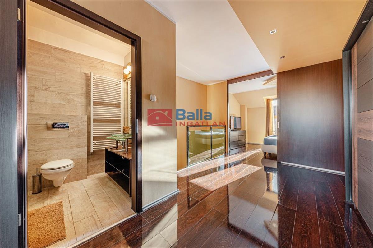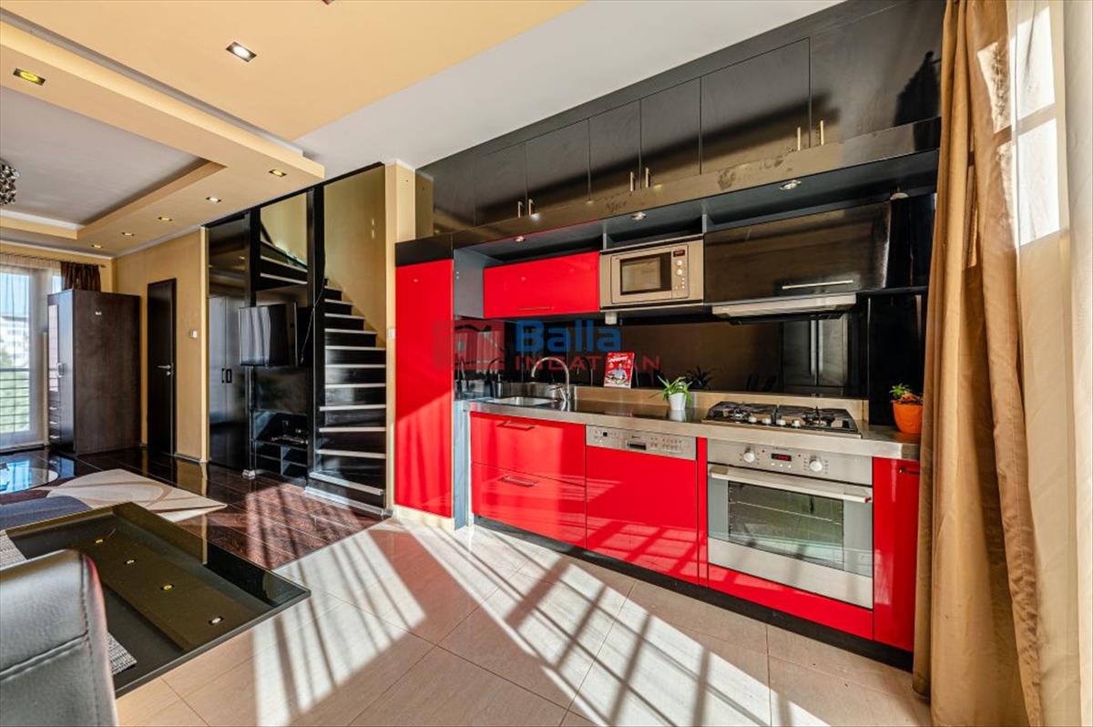 Mindkét szinten két-két franciaerkély nyit lehetőséget a természetes fény beáramlására és a kellemes kilátás élvezetére. a lakás belsőépítész által megálmodott, modern és fiatalos stílusban került kialakításra, különleges, egyedi megoldásokkal, így az új tulajdonos egy igazán karakteres és azonnal költözhető otthonba érkezhet.