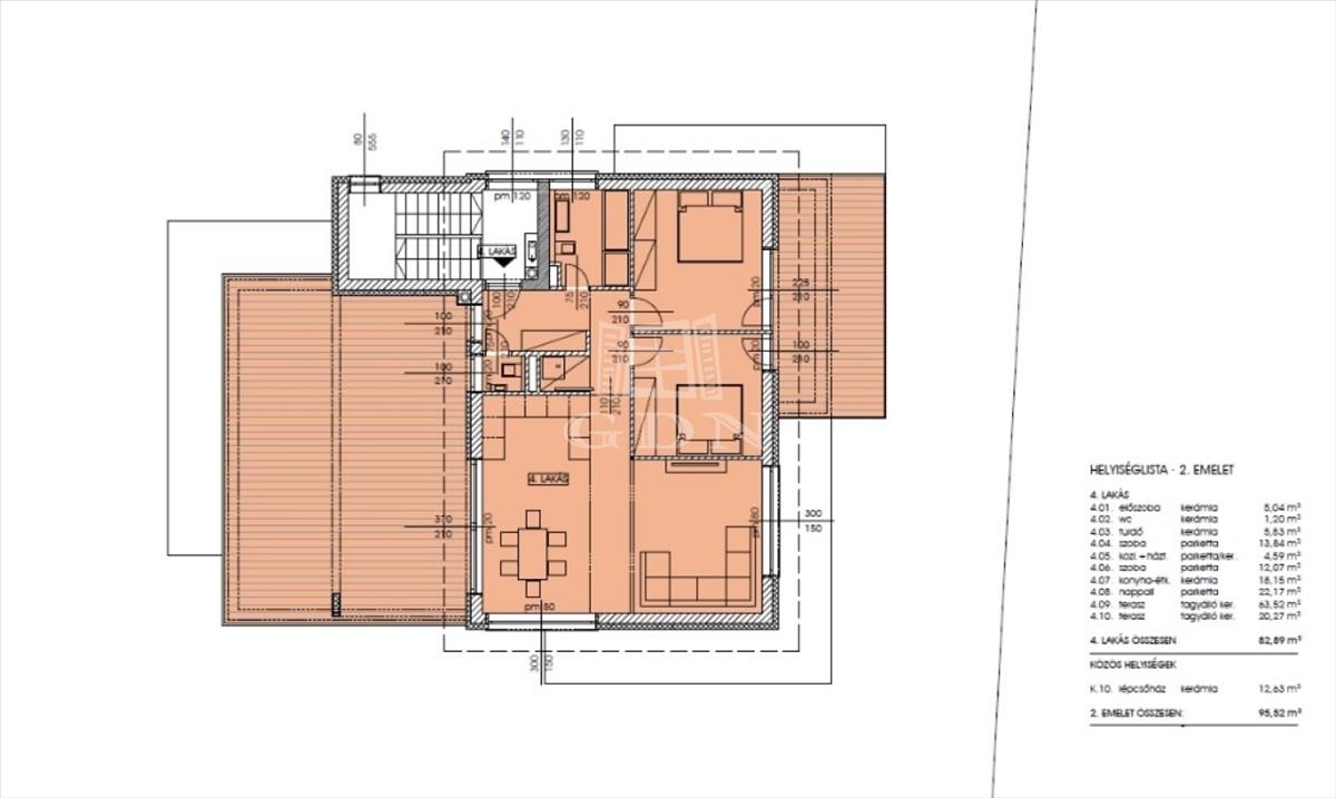Ez a különleges penthouse jellegű, 82, 89 m²-es II. emeleti lakás a projekt ékköve. a 92, 64 m²-es, körbeölelő terasz páratlan szabadtéri életteret kínál — tökéletes helyszín reggeli kávéhoz, pihenéshez vagy baráti összejövetelekhez.