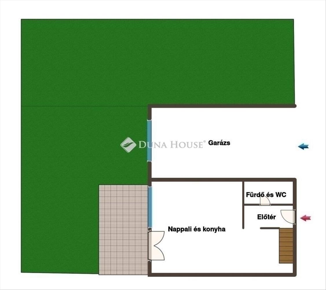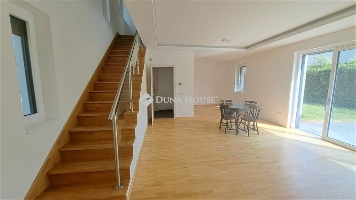 Földszint tágas nappali, modern konyha, közvetlen kertkapcsolat, ideális családi és baráti együttlétekhez.